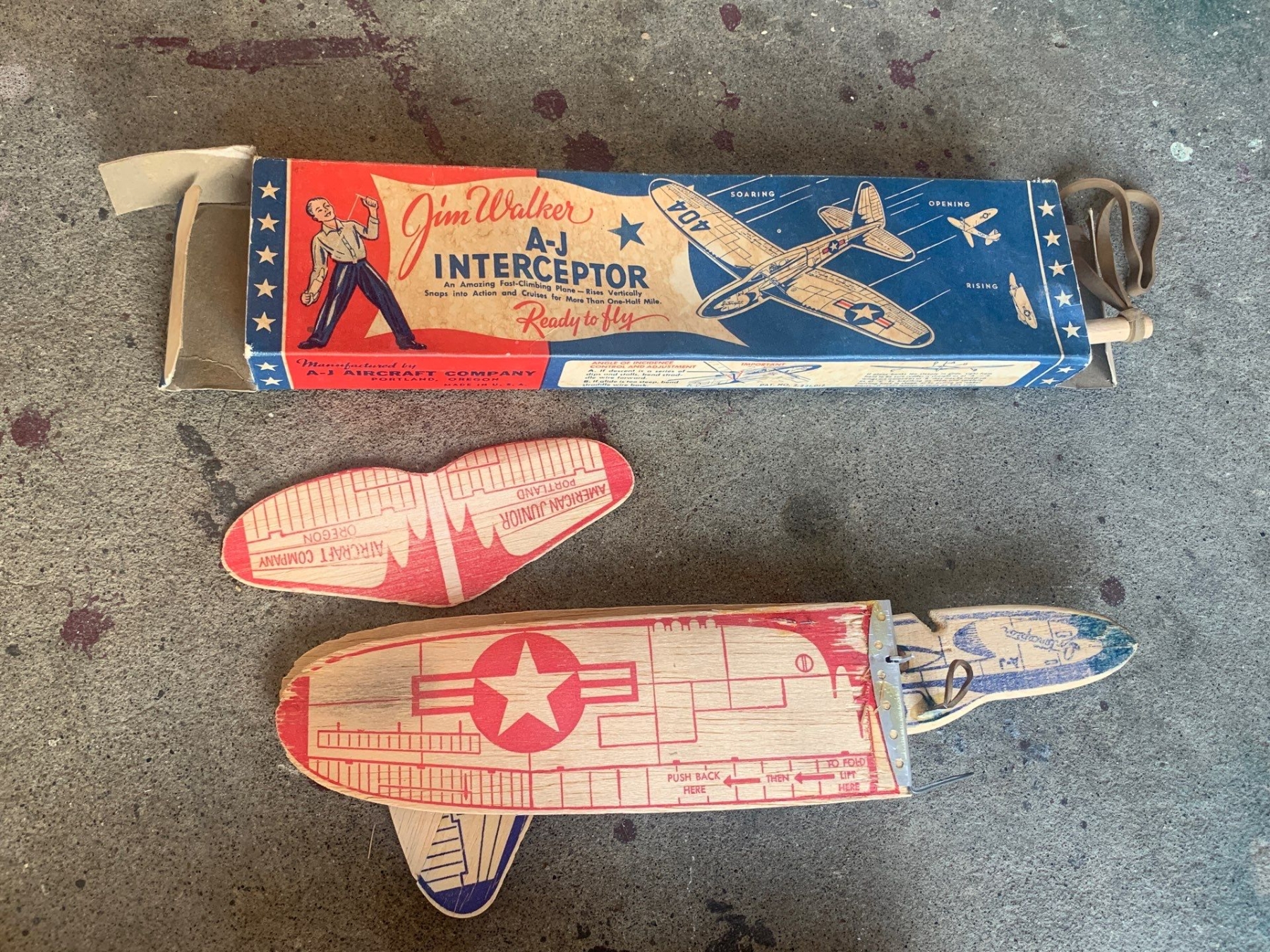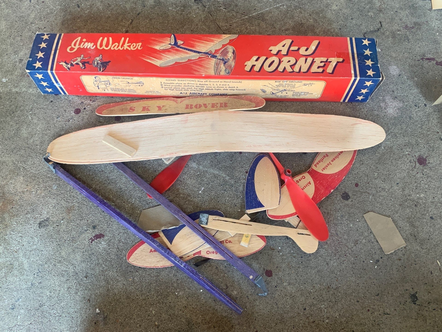 Vintage Londontoy Vehicle & Jim Walker A-J Hornet Rubber Band Plane  & Inceptor Folding Wing Glider