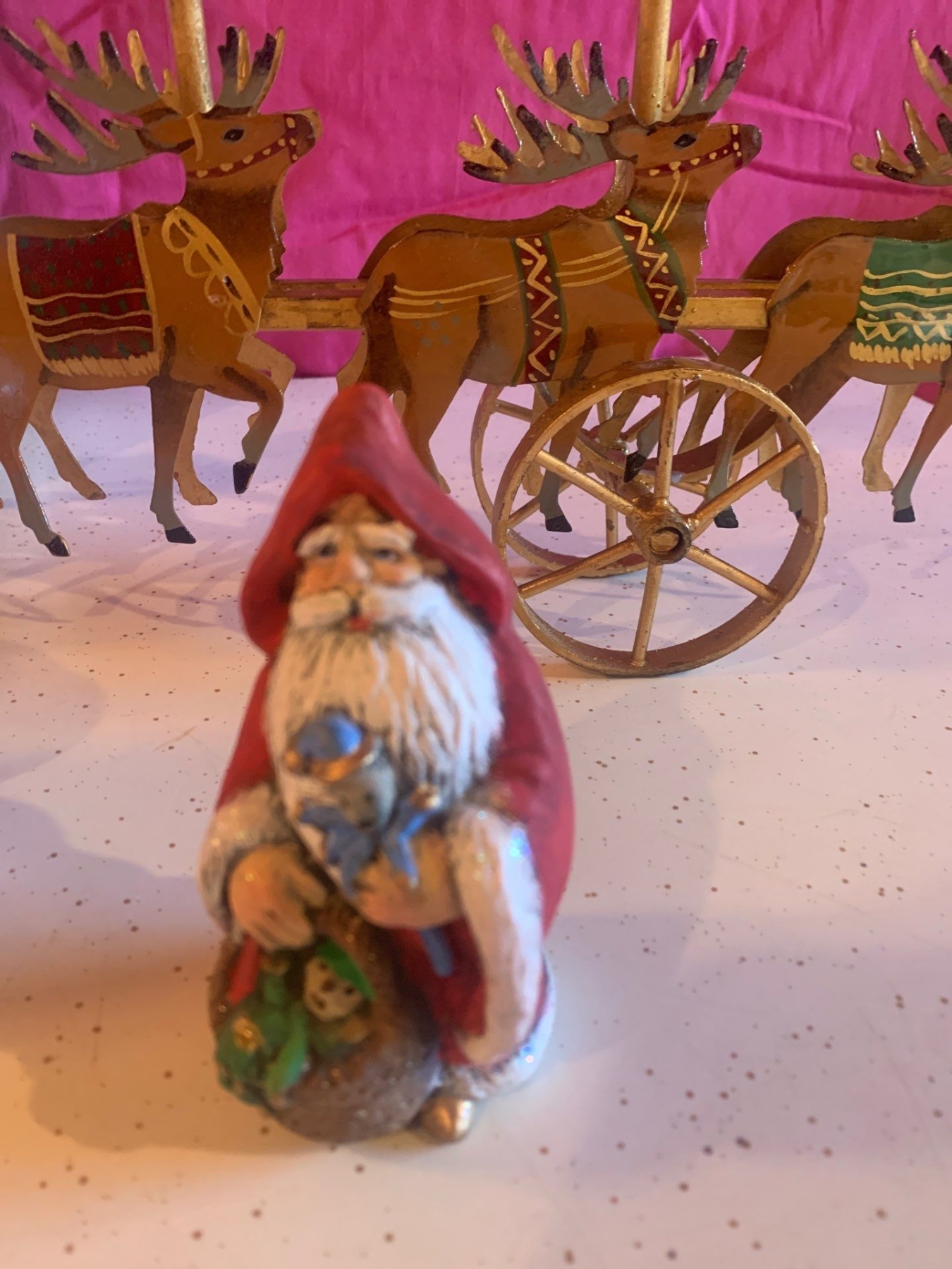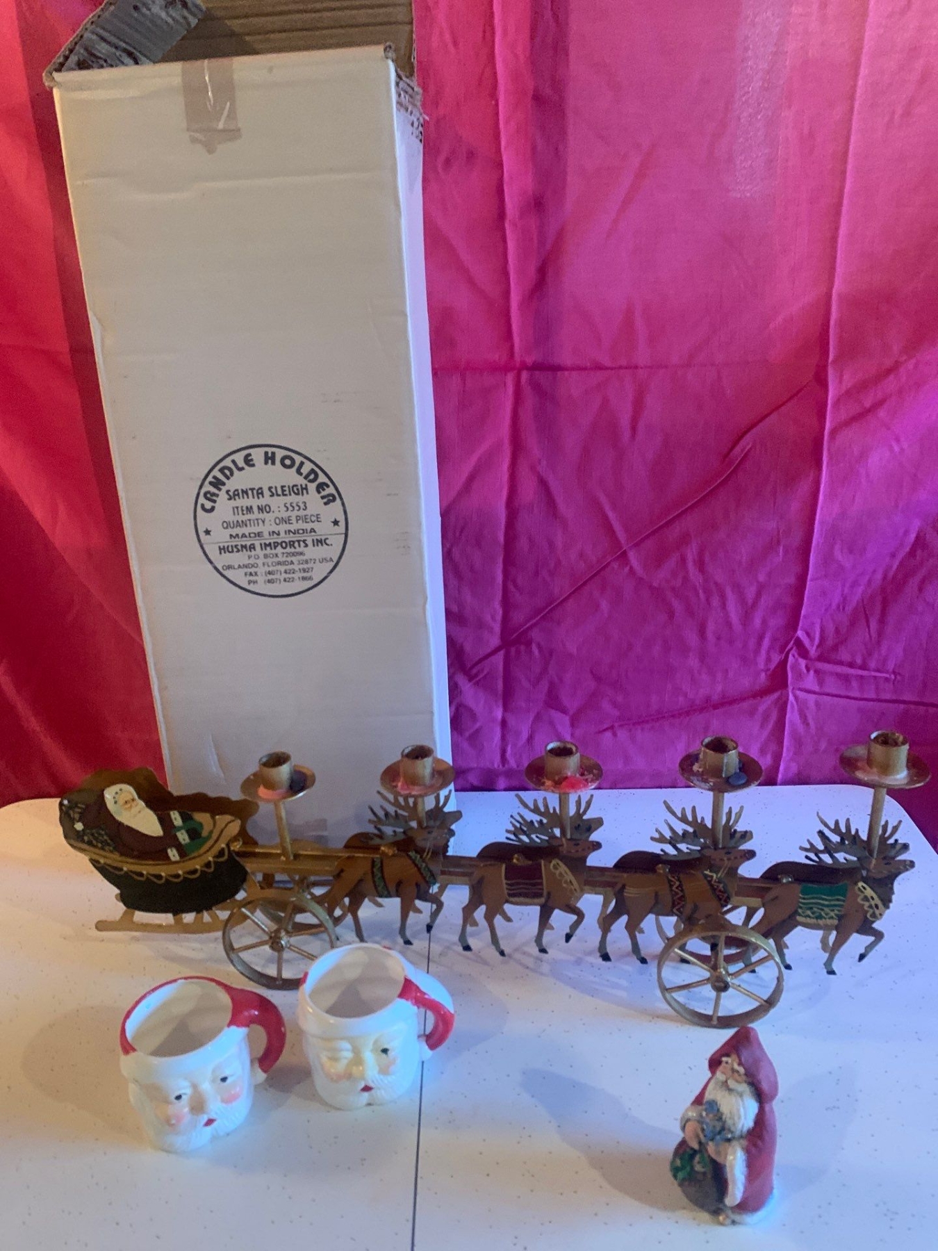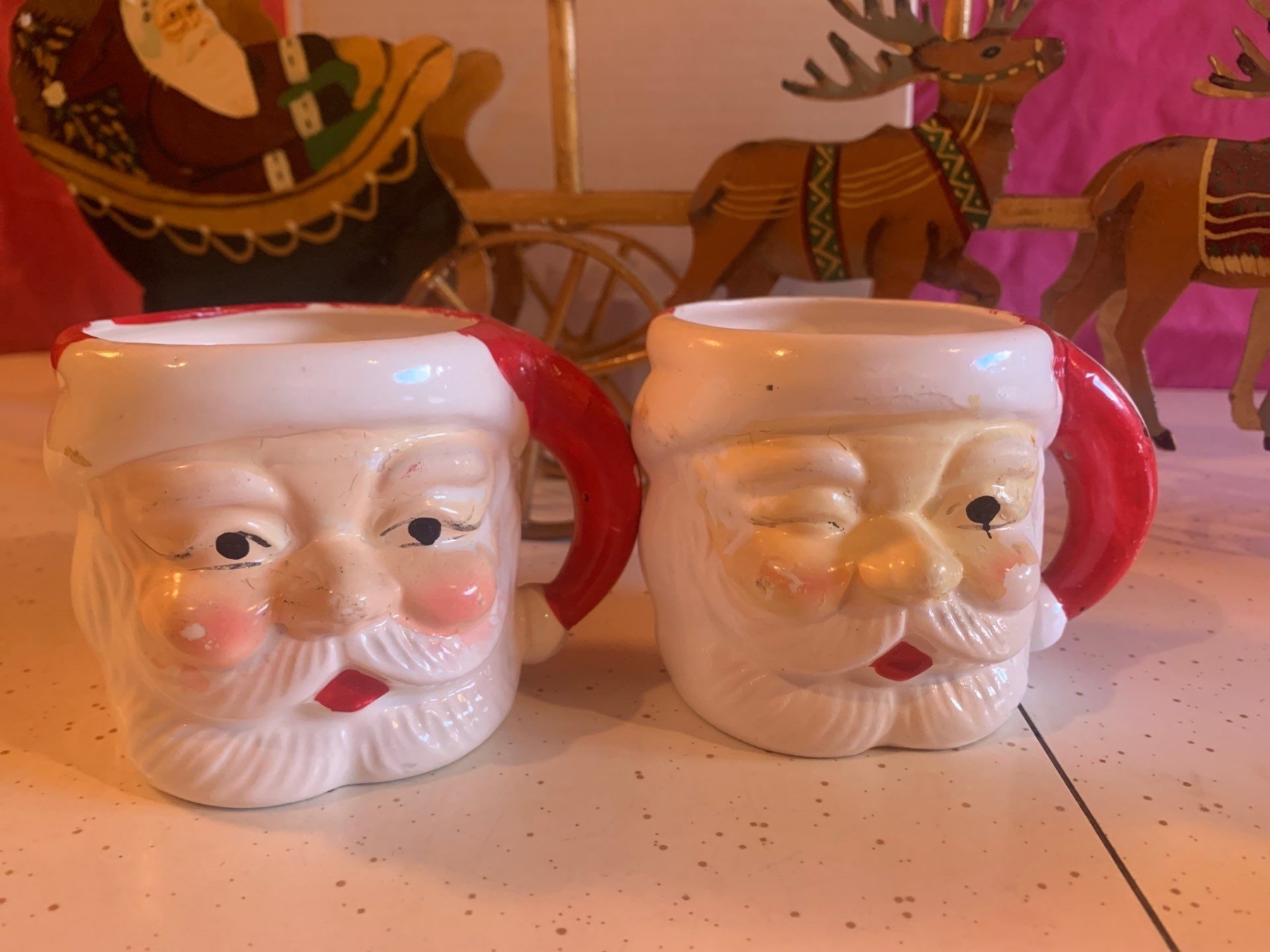 Vintage Lot of Santa Decor, Two Vintage Mugs, Candle Holder and Decor