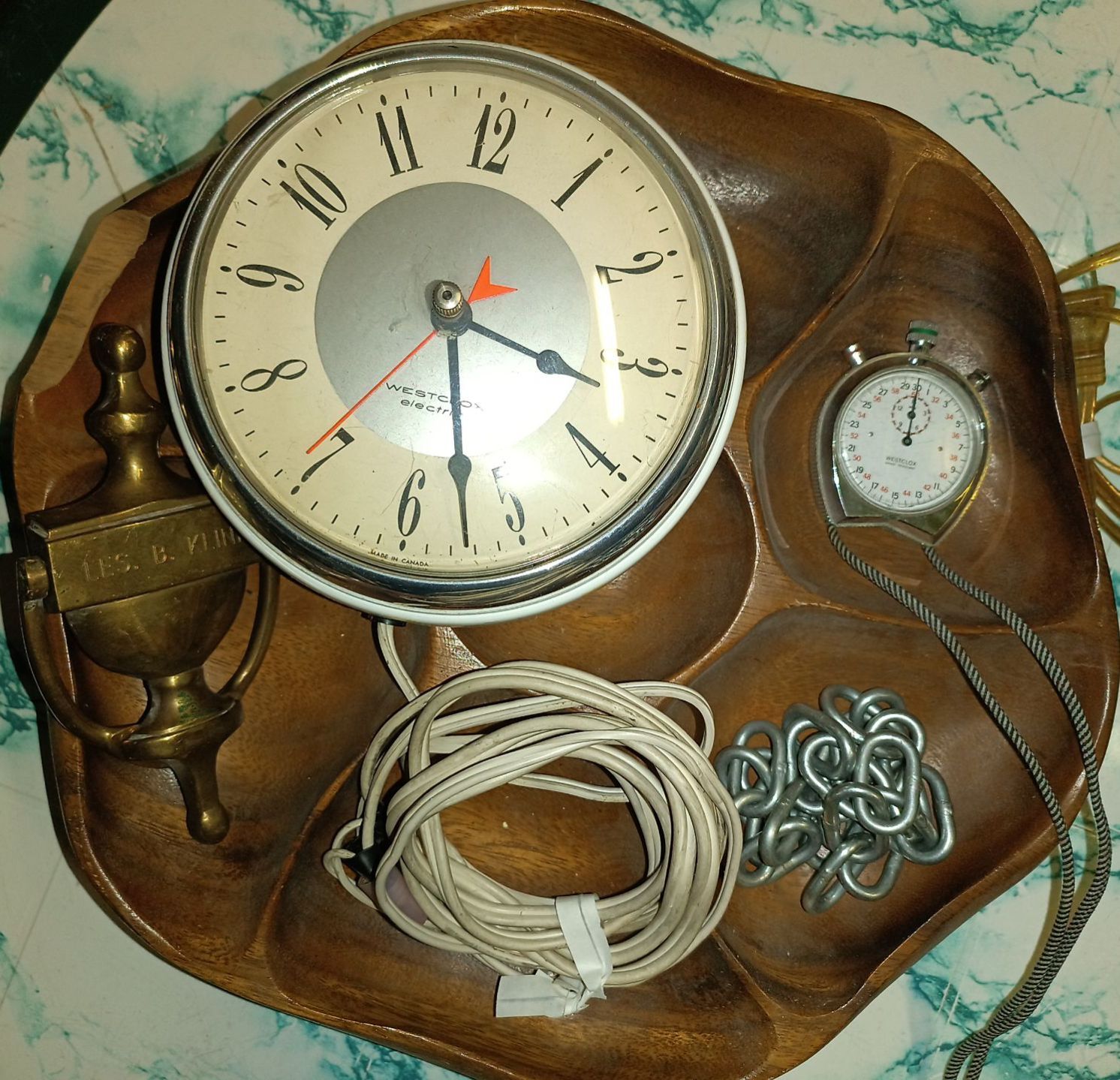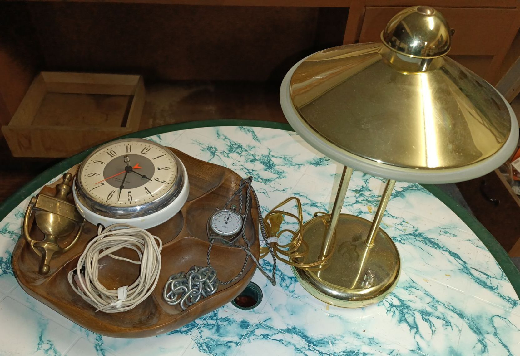 Vintage MCM Lamp, Wall Clock, Door Knocker & Teak Tray (w/Chip)