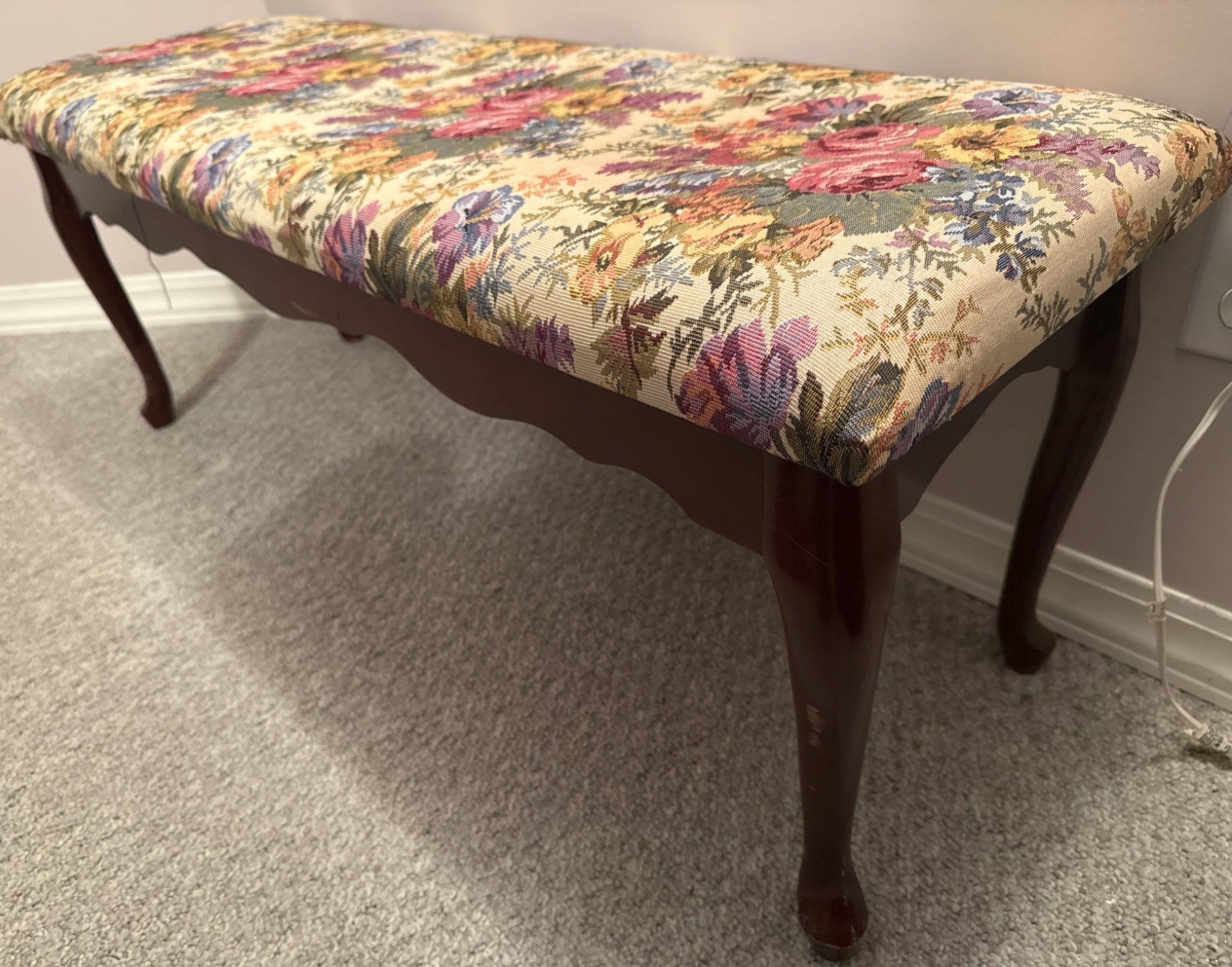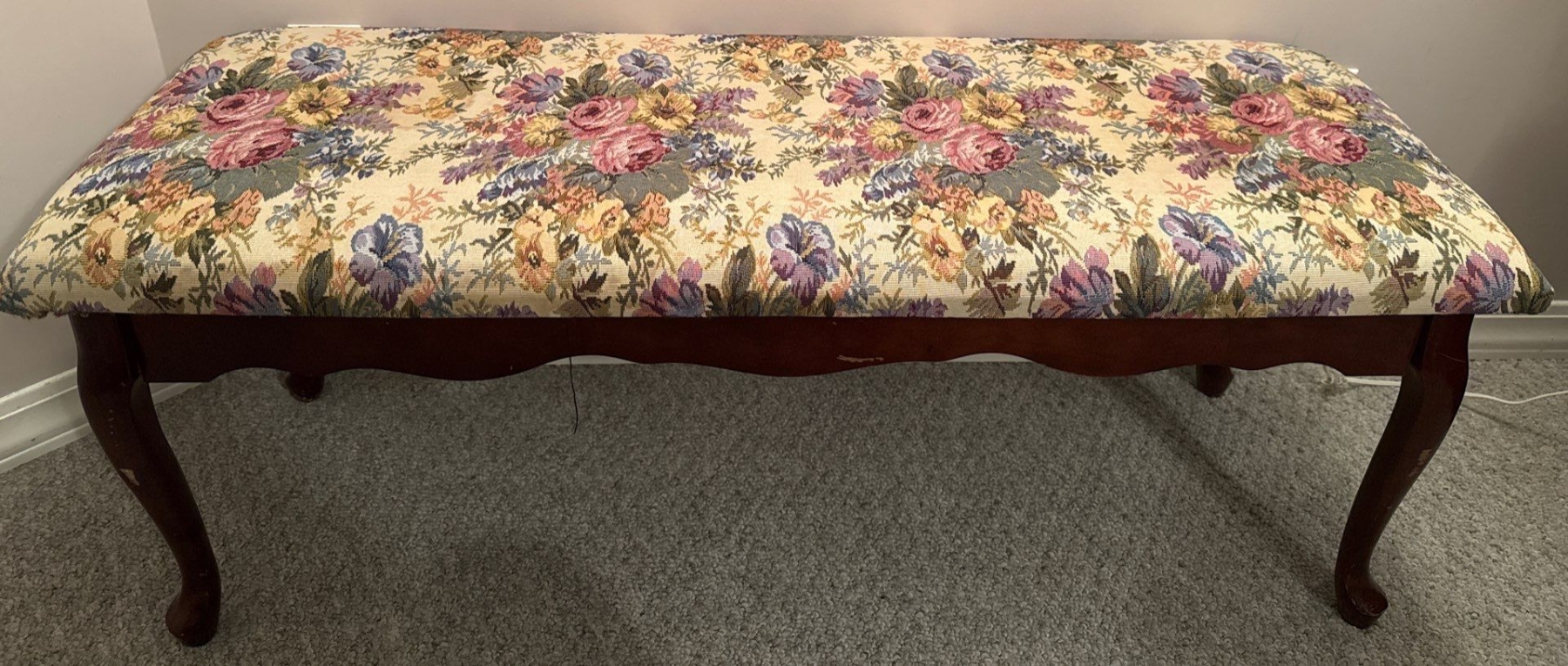 Vintage Mahogany Bench w/ Floral Upholstered Seat