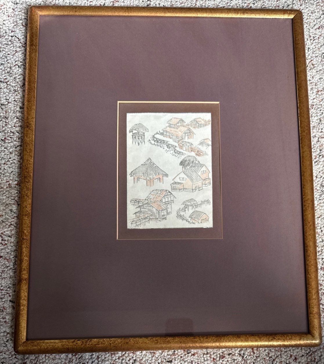 Vintage Matted Asian Art Print 13.5x16