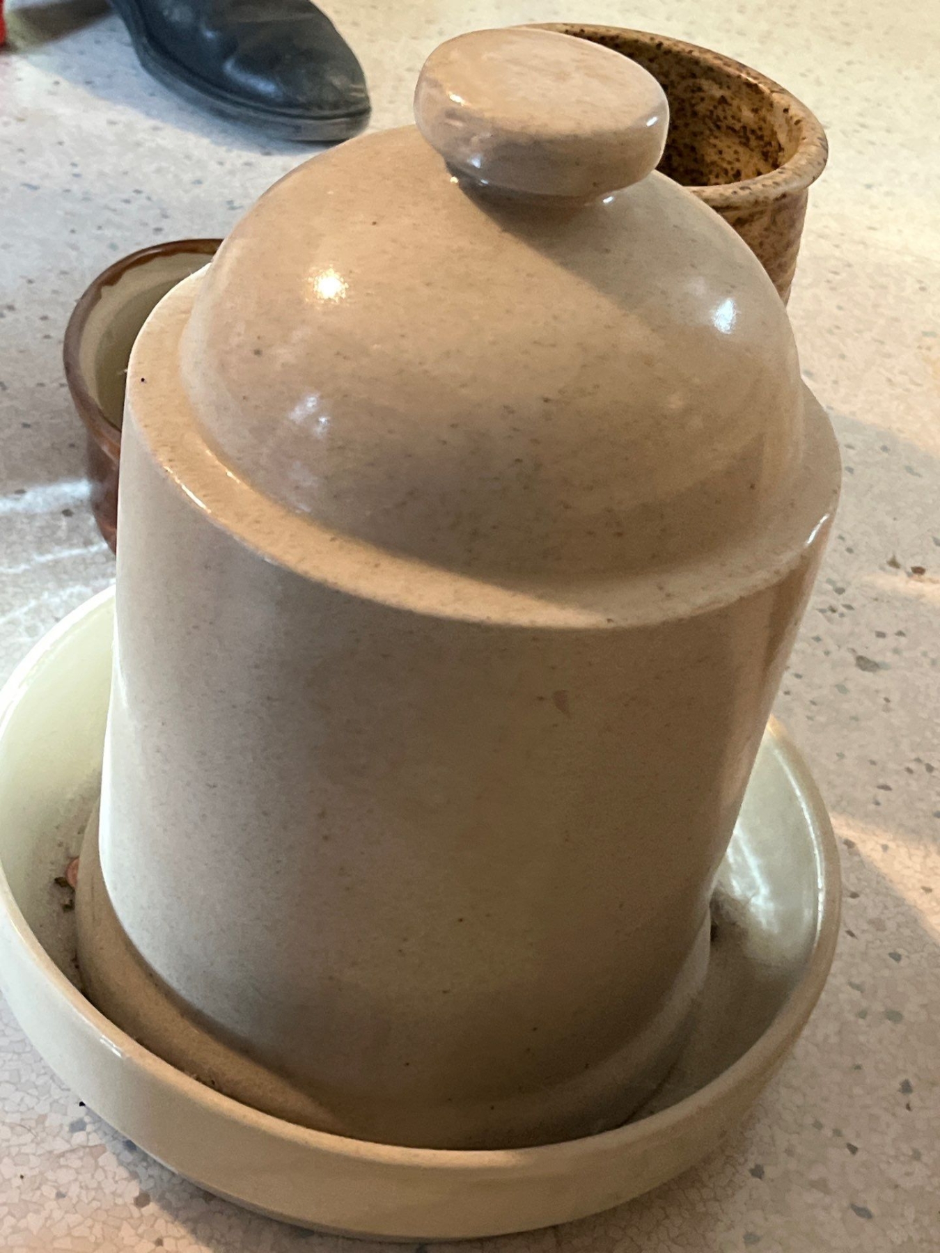 Vintage Medalta Potteries LTD, Medicine Hat, Alberta, Canada Poultry Feeder with 3 other antique pie