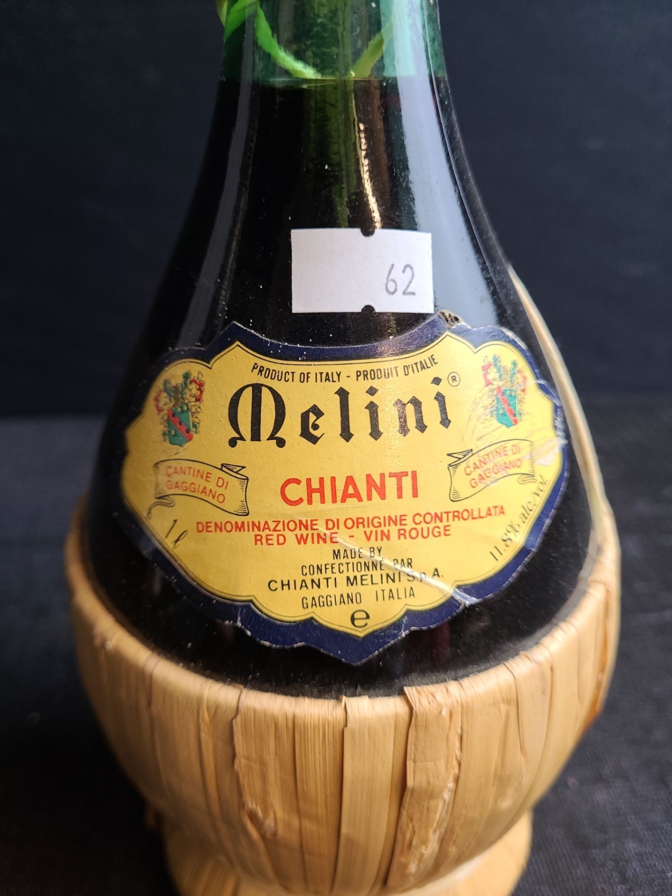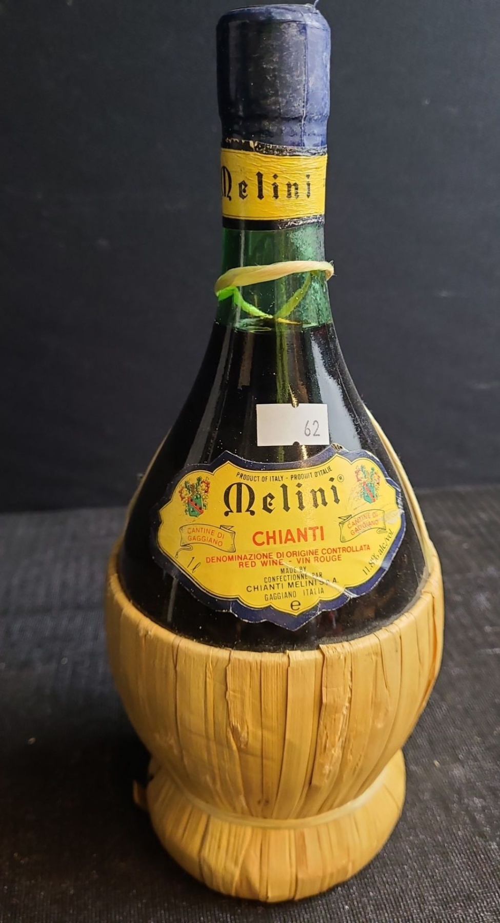 Melini Chianti wine is a dry red wine produced in Tuscany, Italy, by the Melini winery, which was founded in 1705. The iconic round bottle wrapped in a straw basket is known as a fiasco. The straw wrapping, or fiasco, served to protect the bottle during shipping and allowed the wide-bottomed bottles to stand upright