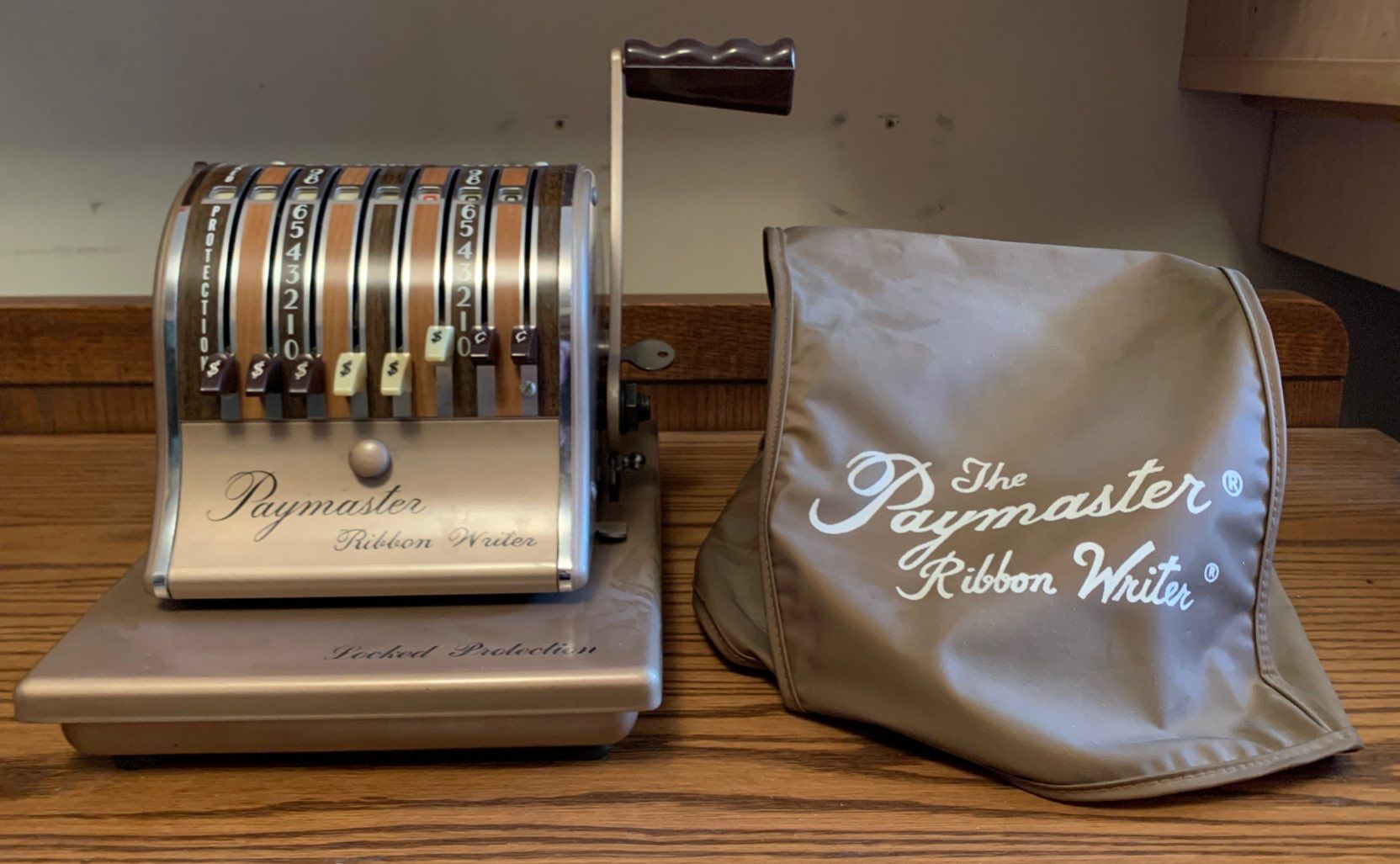 Vintage Metal 'The Paymaster' Ribbon Writer, Locked Protection Register w/ Case