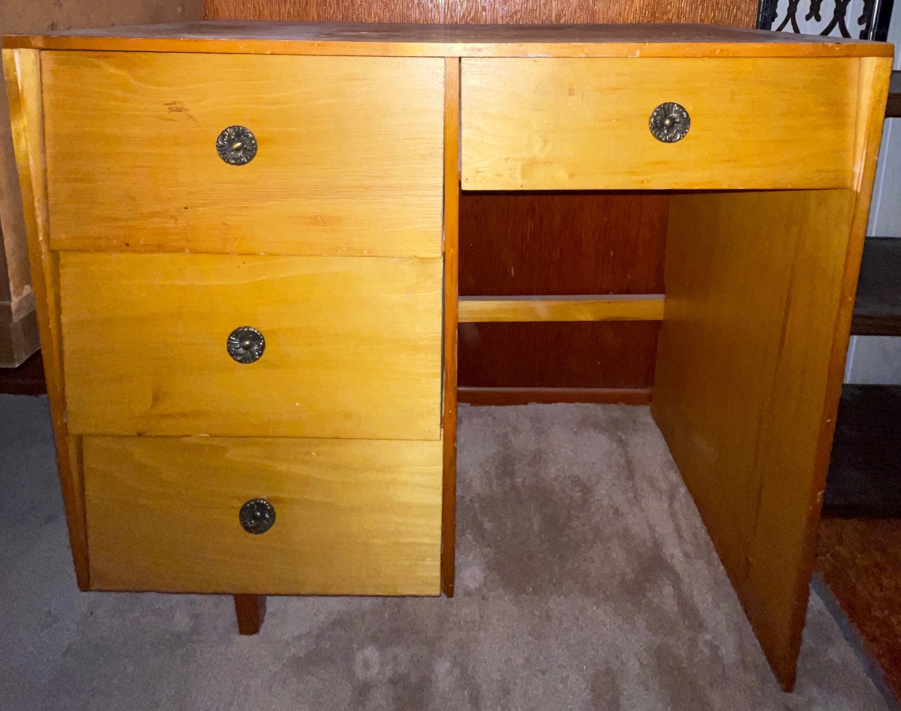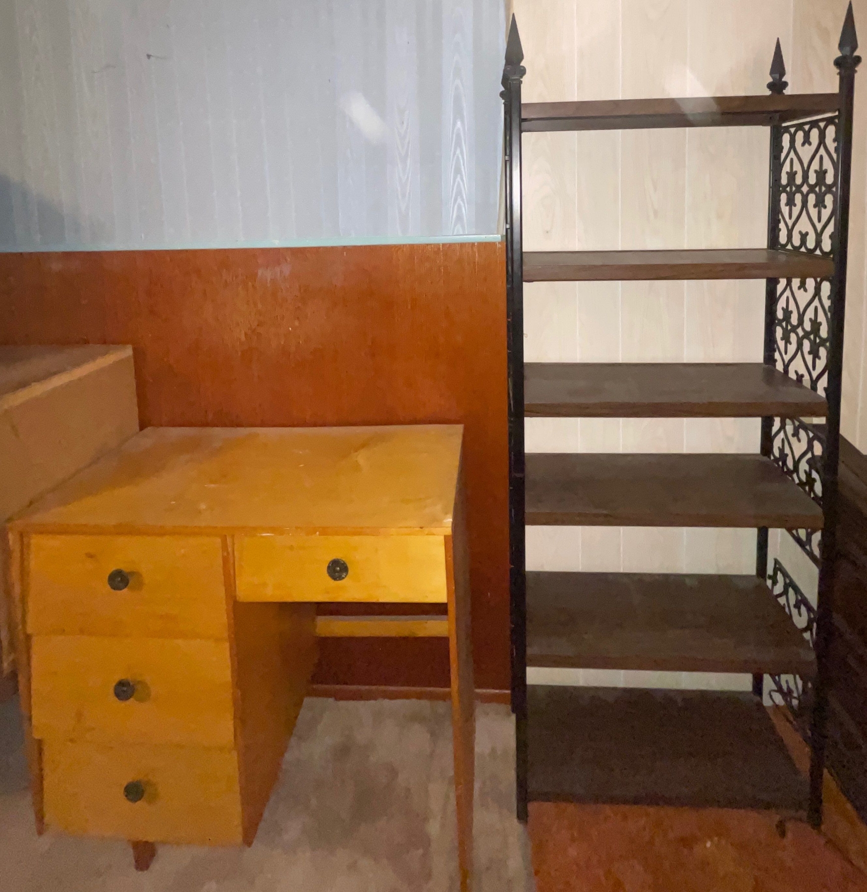 Vintage MidEvil Like Shellvin unit w/ small wooden desk (Not Too heavy)