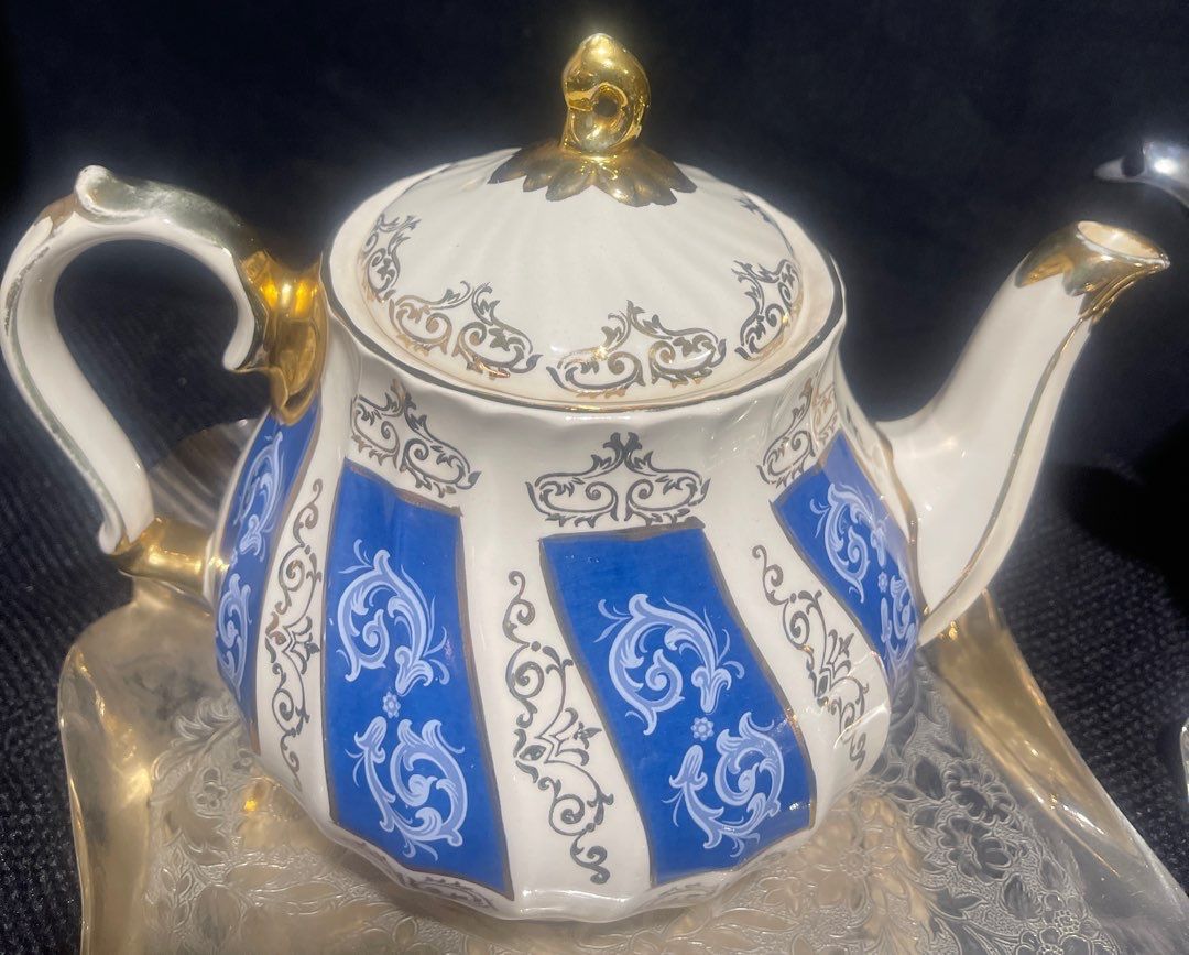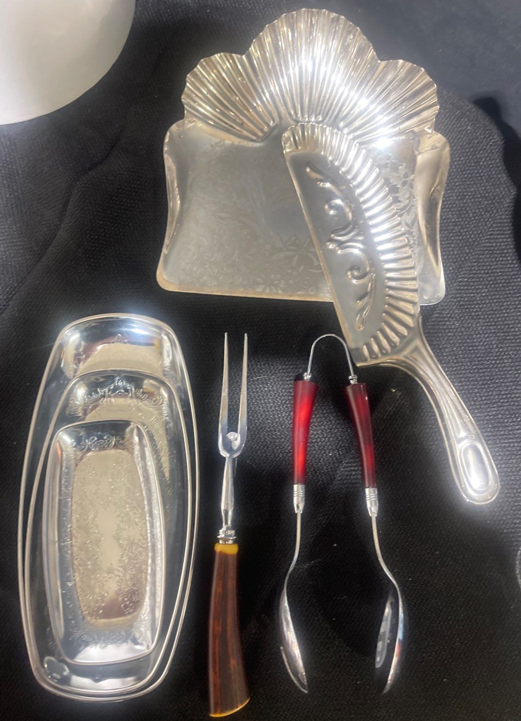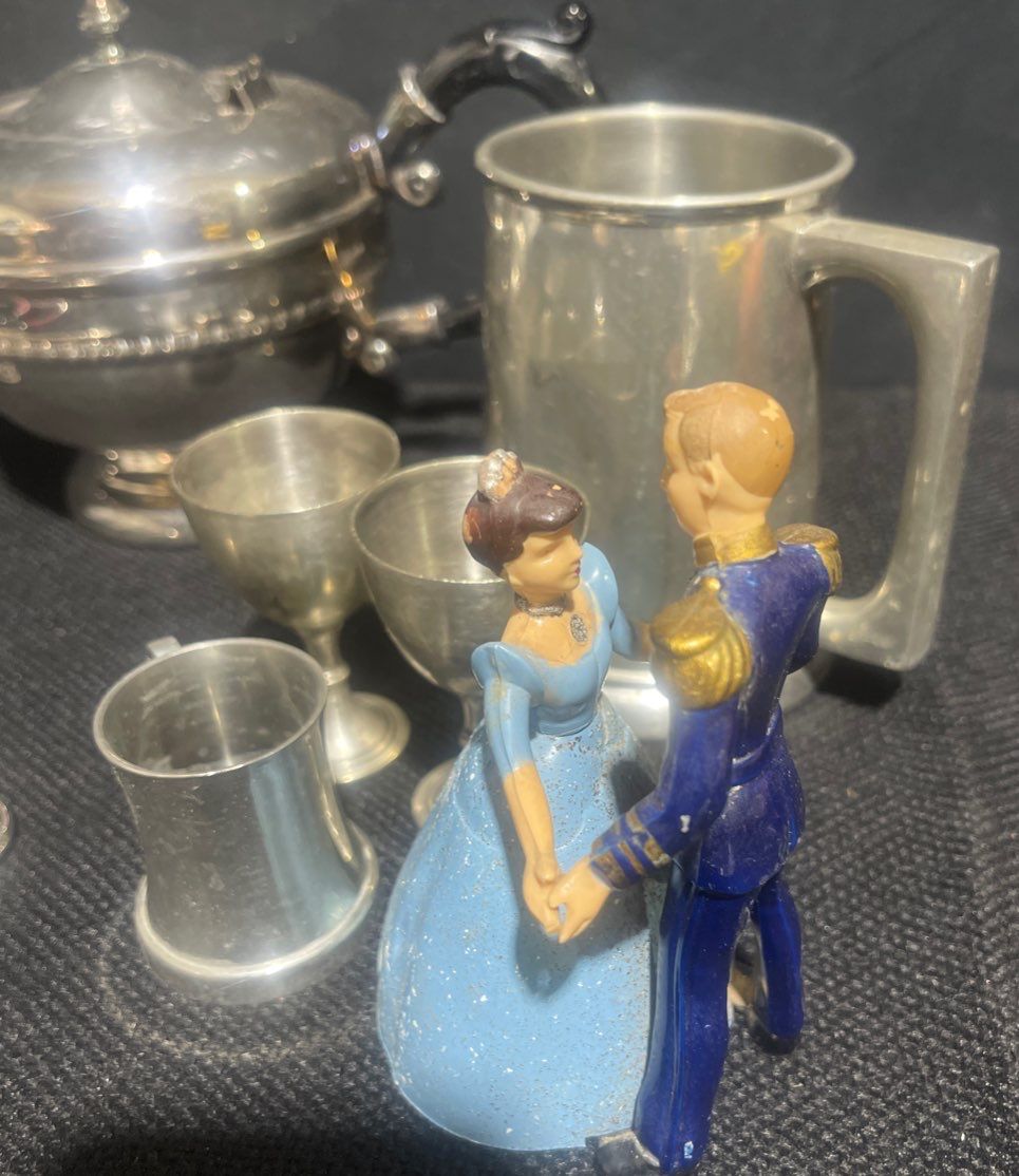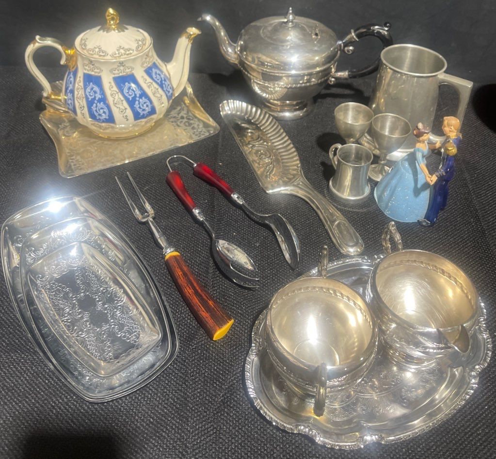 Vintage Mismatched Tea Set - Pewter Fine China Antler Turkey Fork & More