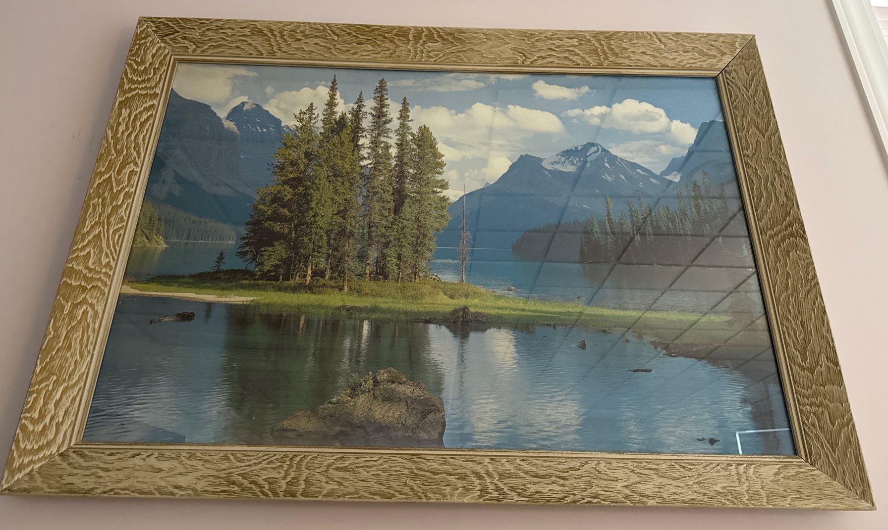Vintage Mountainscape w/ Beveled Brass Frame 28x22