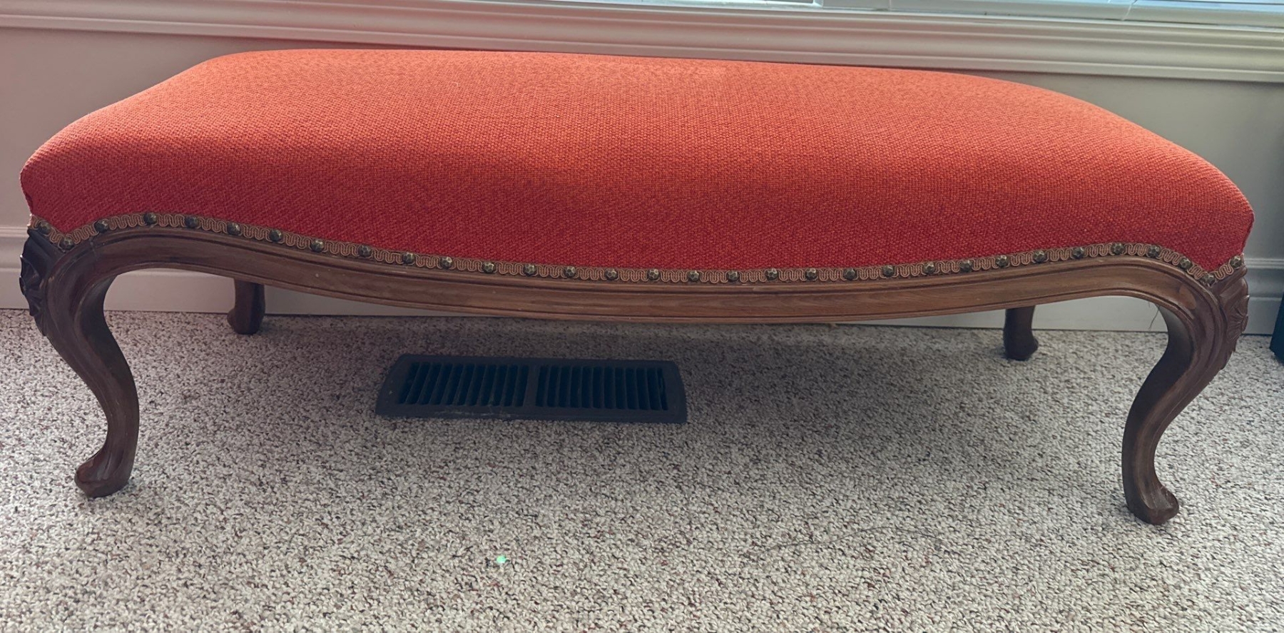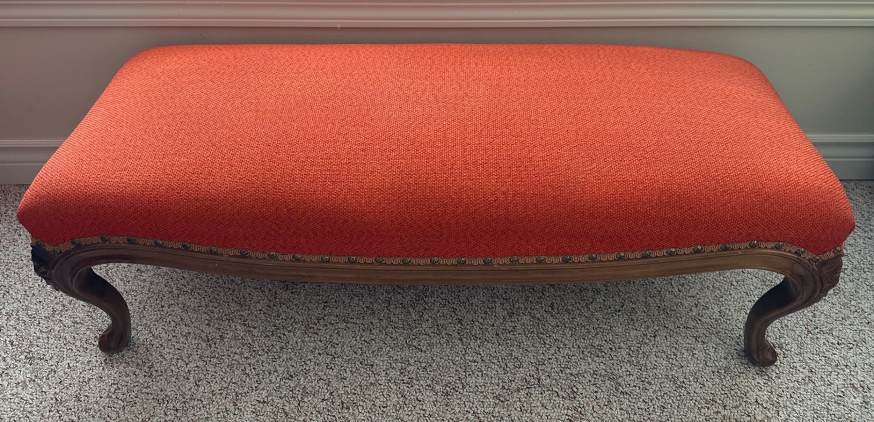 Vintage Oak Clawfoot Ottoman / Bench w/ Pumkin Upholstery & Stud Detail 34L