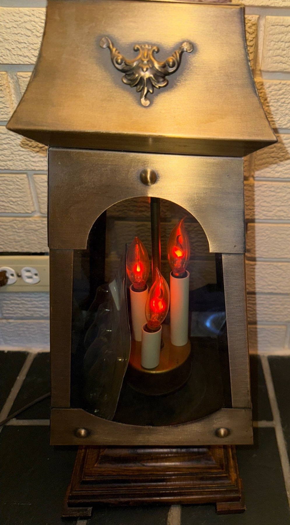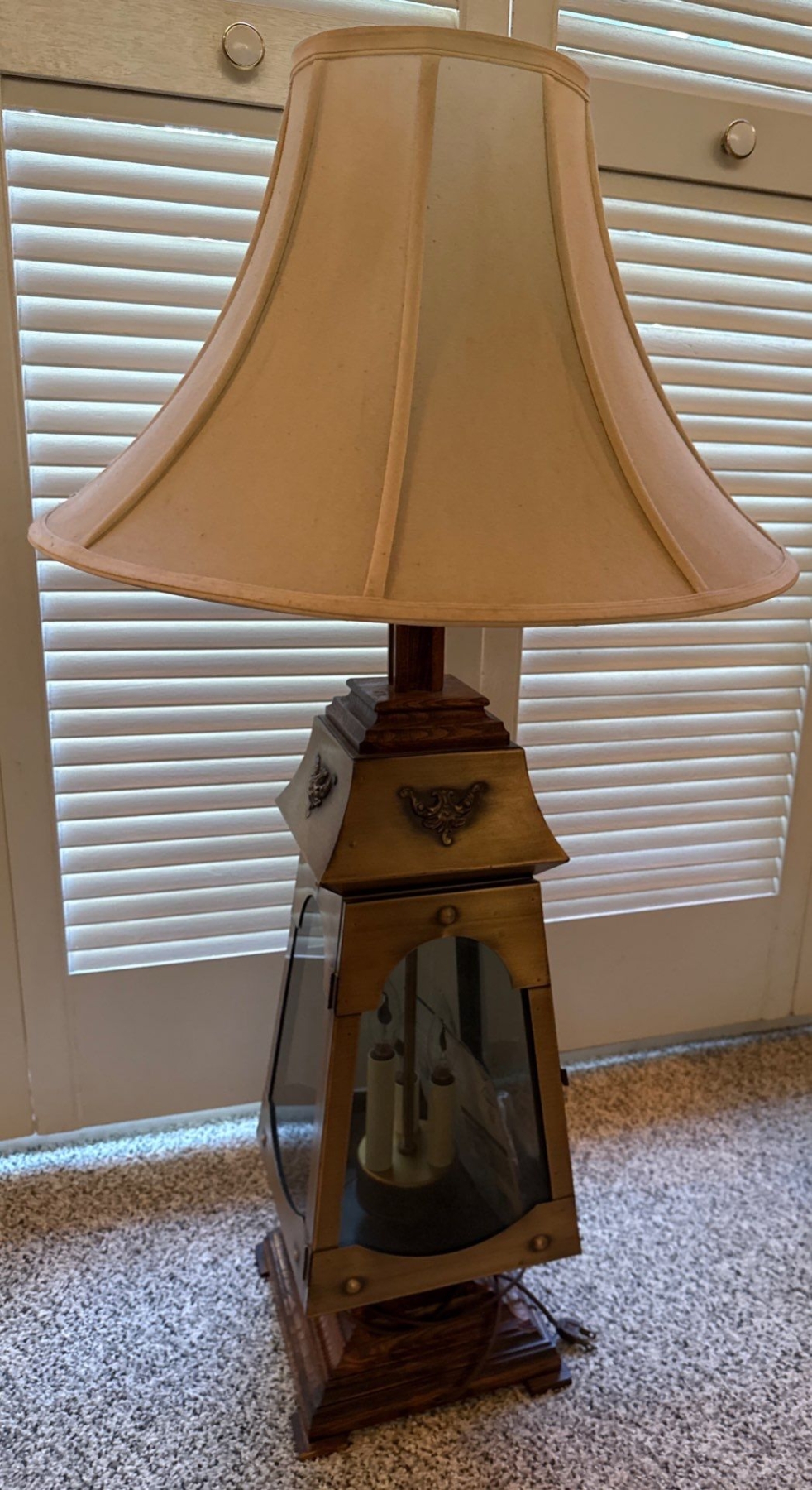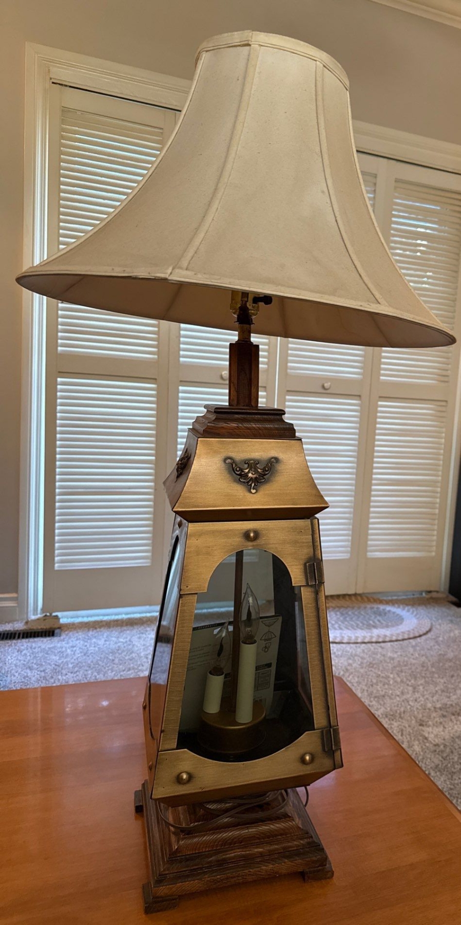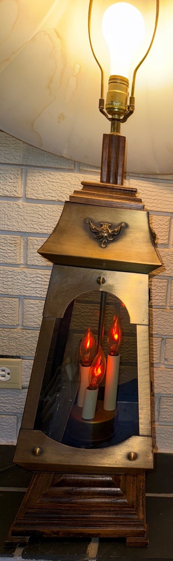 Vintage Oak Smoked Glass Nautical Brass Outlet Table Lamp
