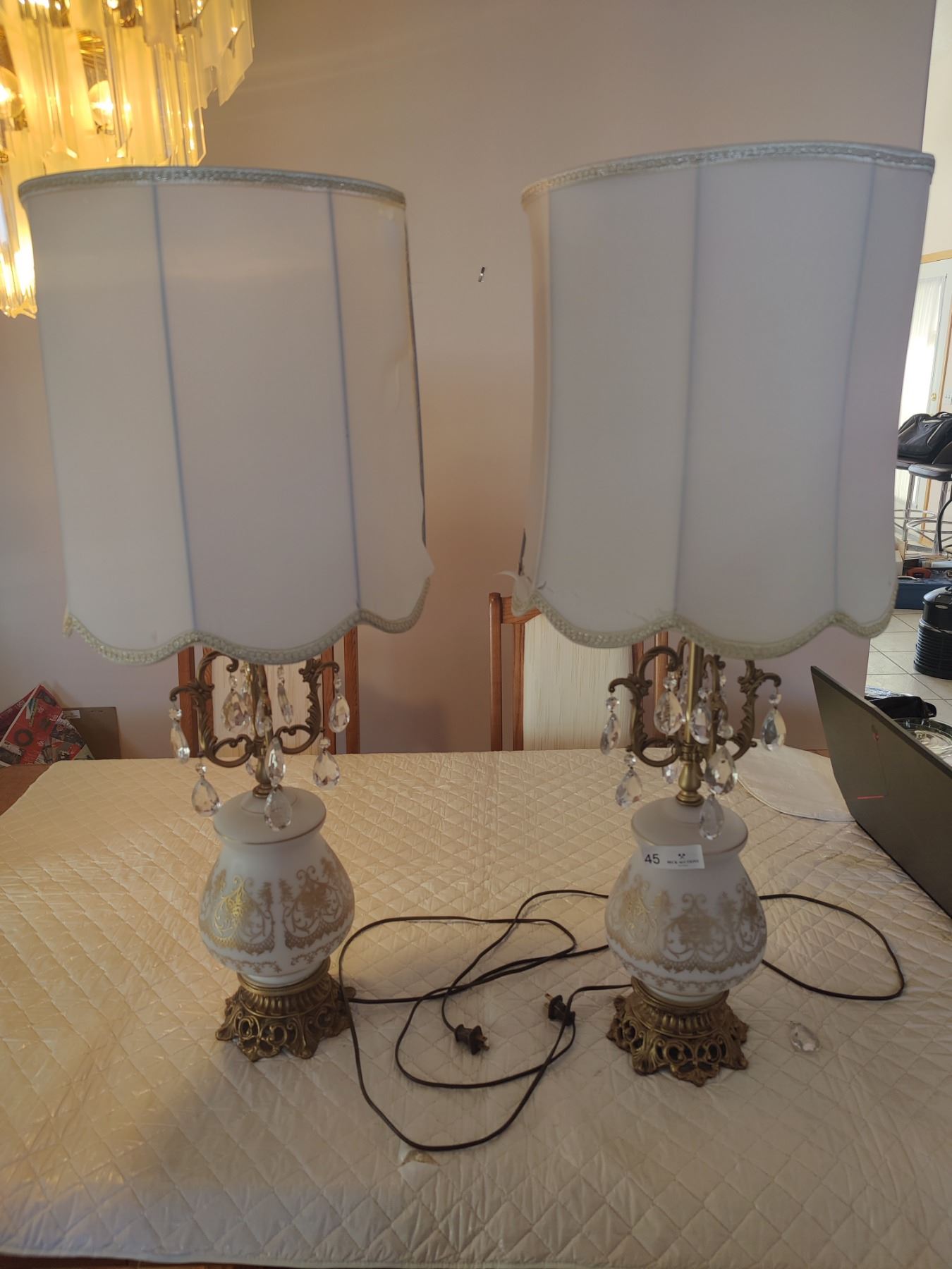 Vintage Ornate Table Lamps with Shades x2
