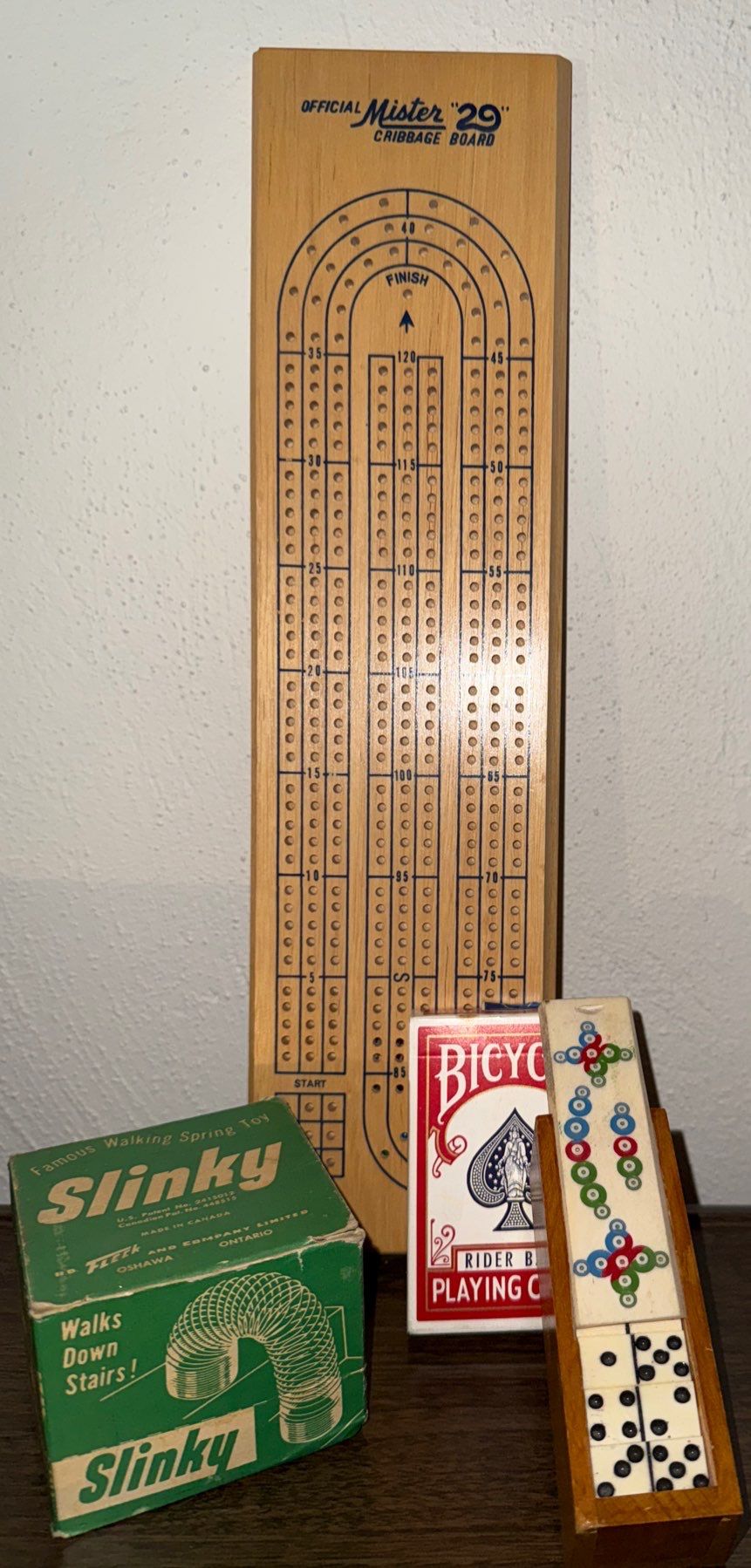 Vintage Play Things - Cribbage Card Deck Slinky & more