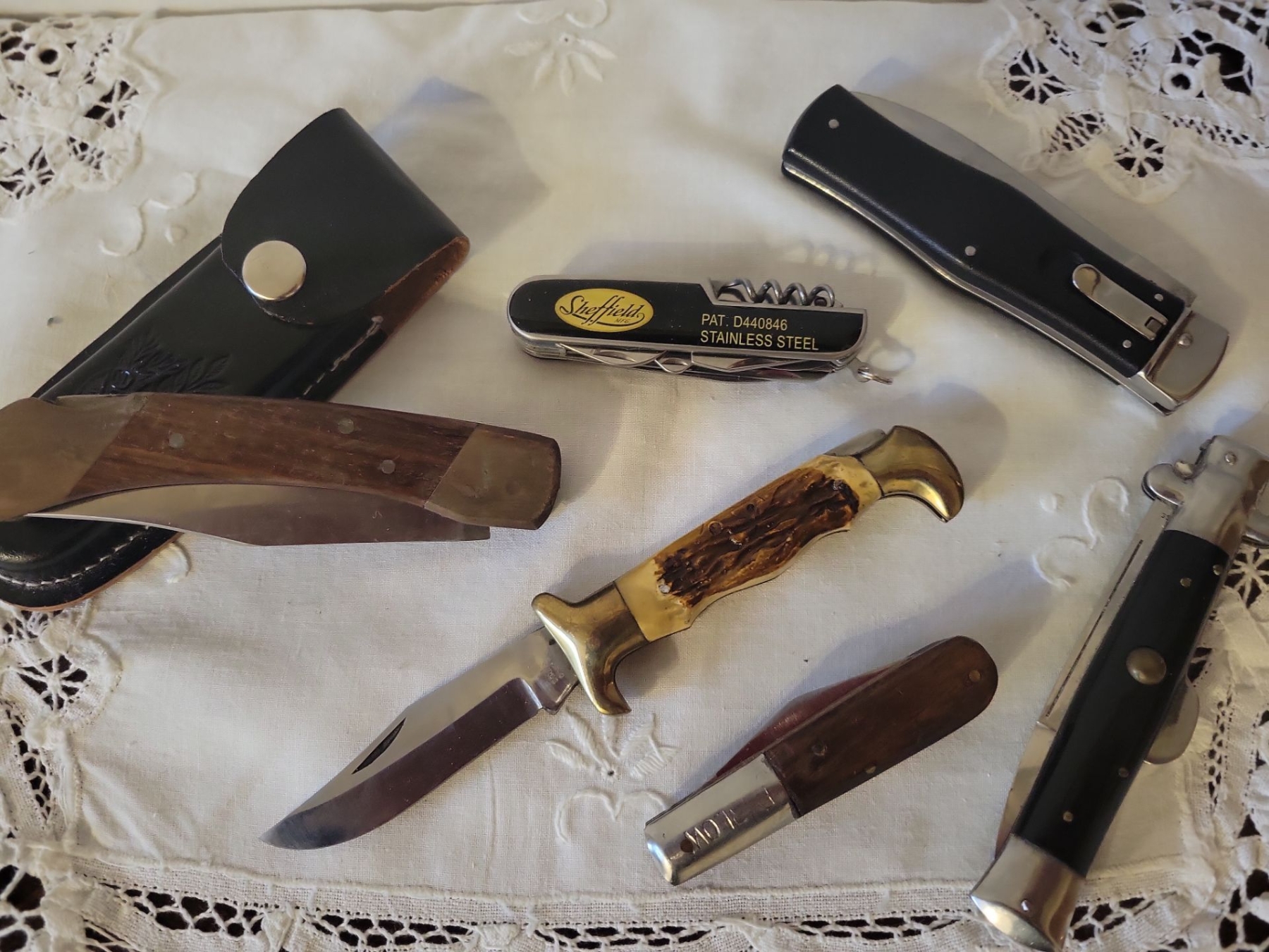Vintage Pocket Knife Collection - 6 Pieces w/ 1 Leather Sheath