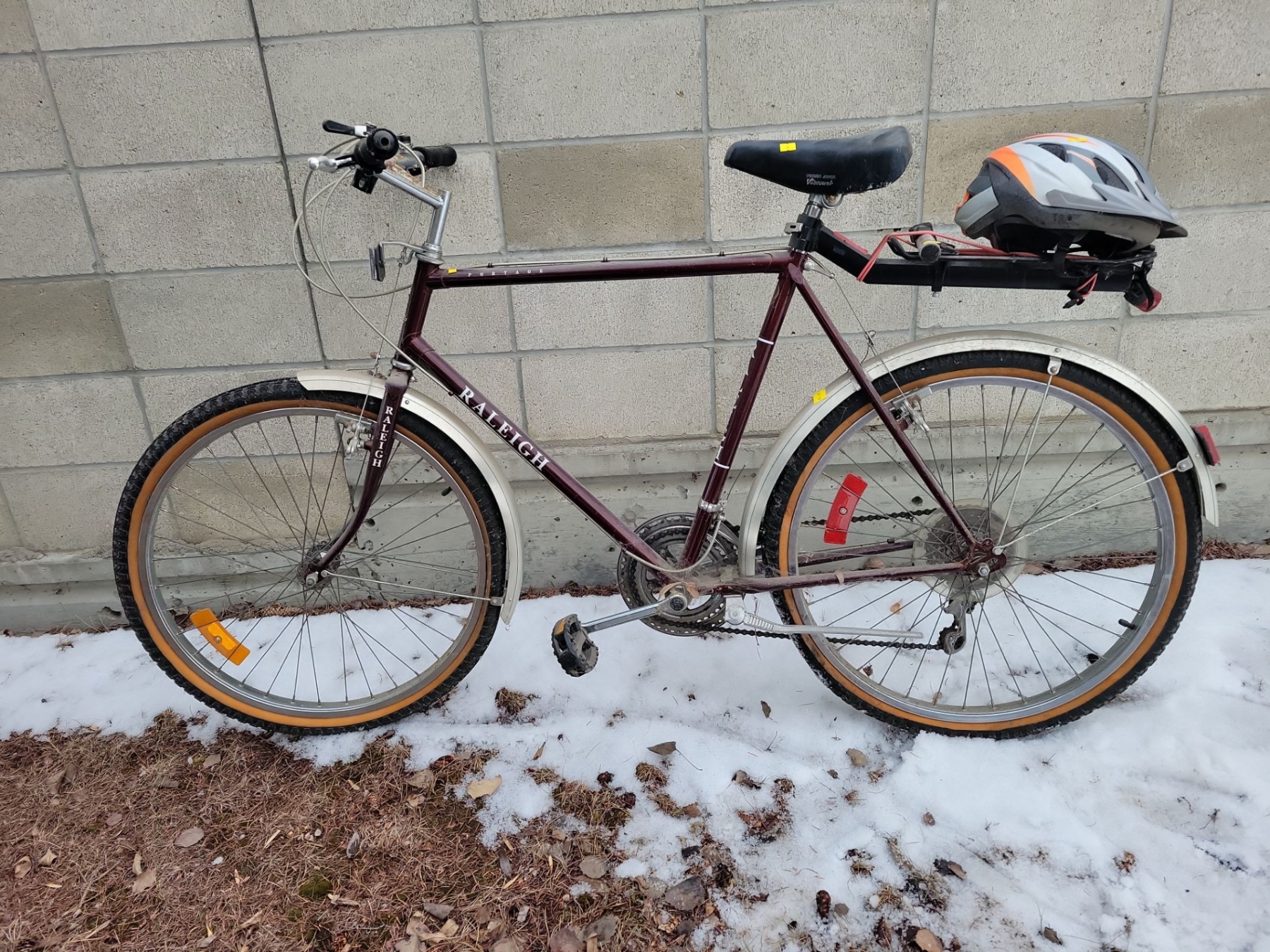 Vintage Raleigh Portage Commuter Bicycle w/ Adult Sized Helmet & Pocket Pump
