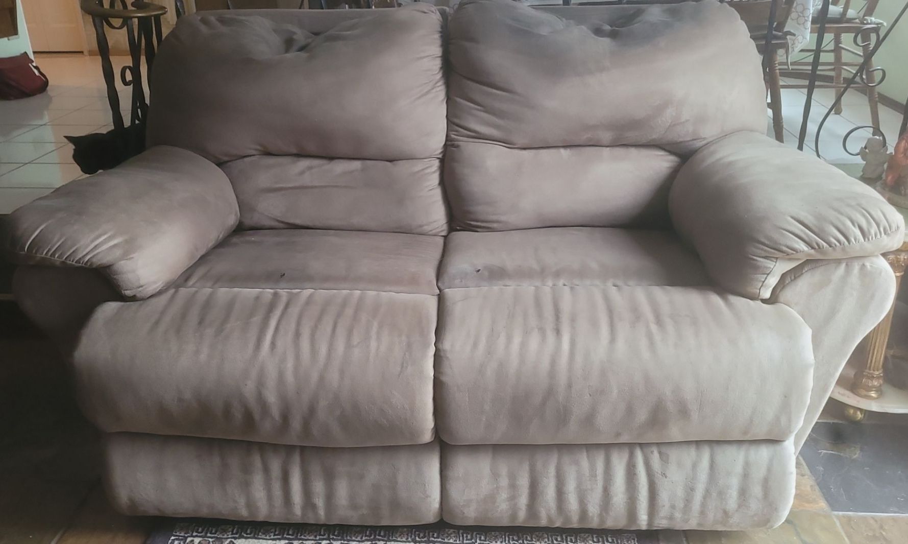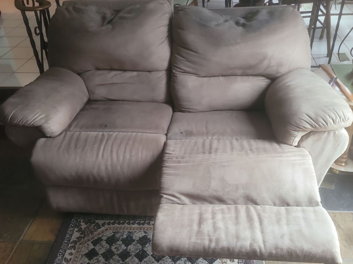 Vintage Reclining Suede Couch from Leon's - 64W, 38D, 36T