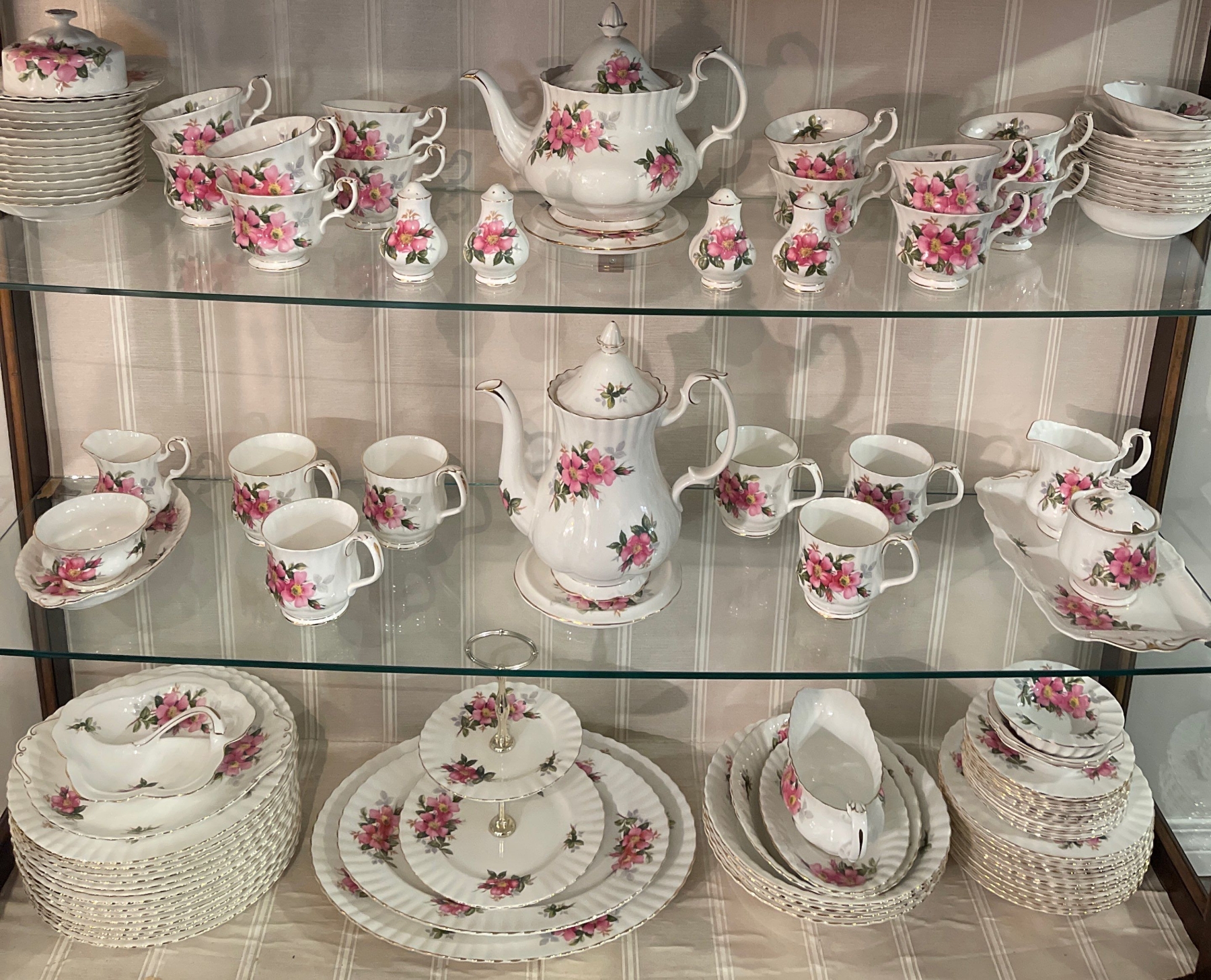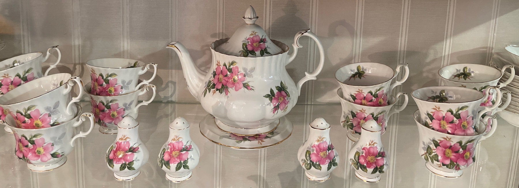 Vintage Royal Albert English Bone China Tea Set "Prairie Rose" - 12 Place Settings