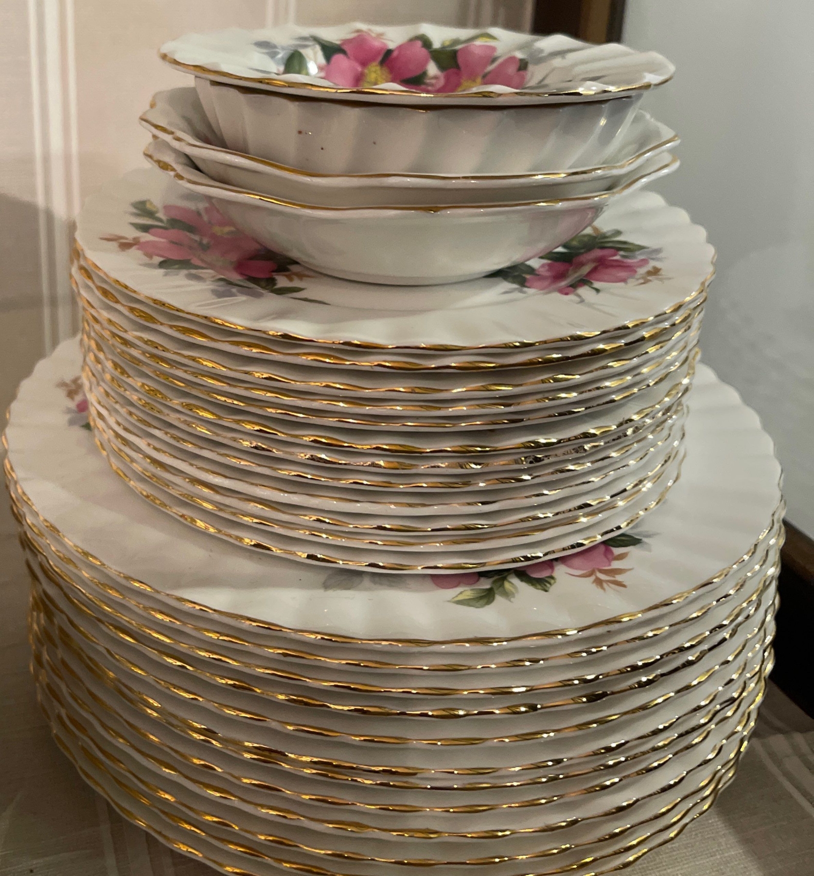 Vintage Royal Albert English Bone China Tea Set  Prairie Rose  - 12 Place Settings