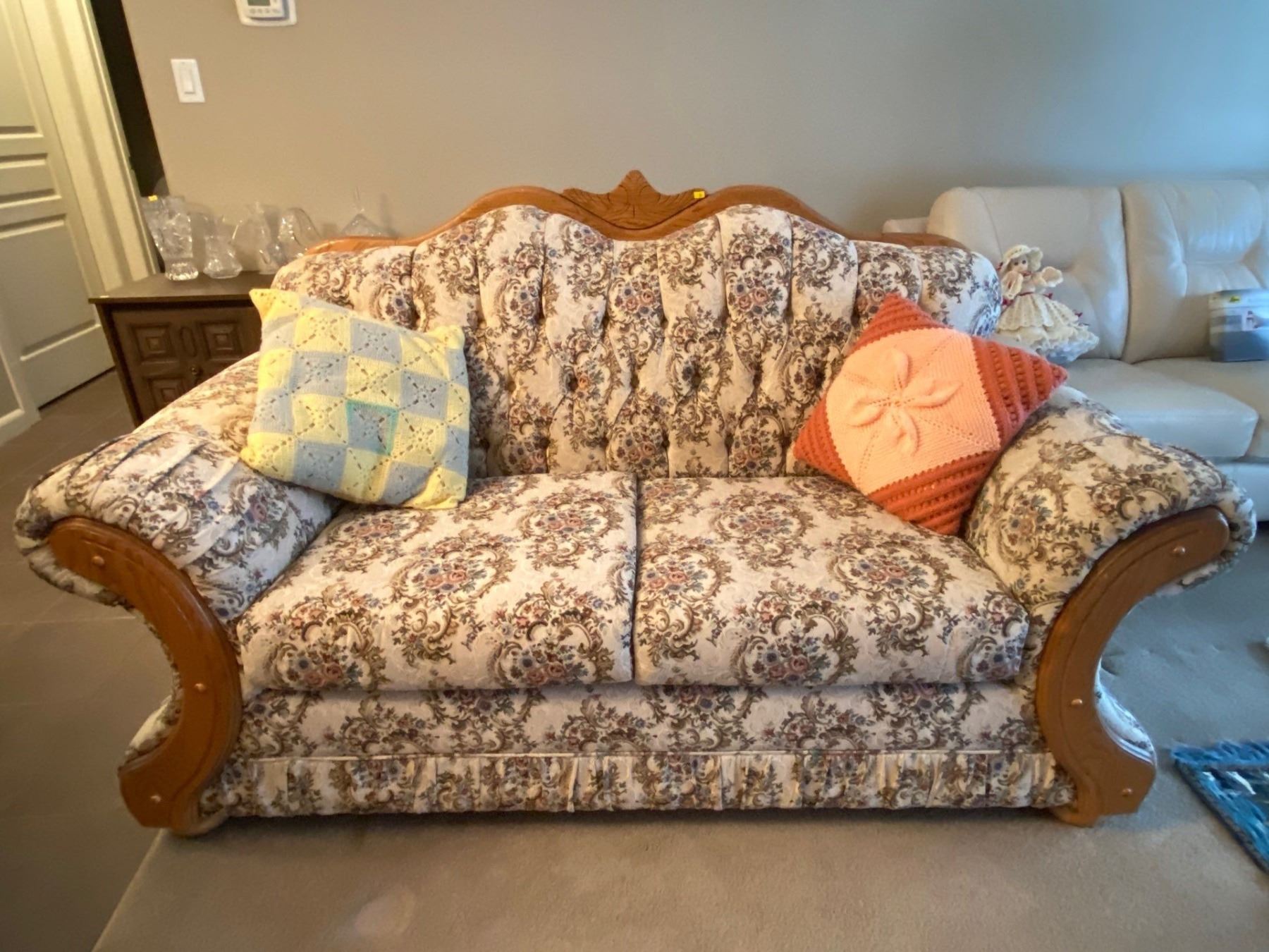 Vintage Royal Floral Pattern Upholstered Couch 68L x 33W x 39T