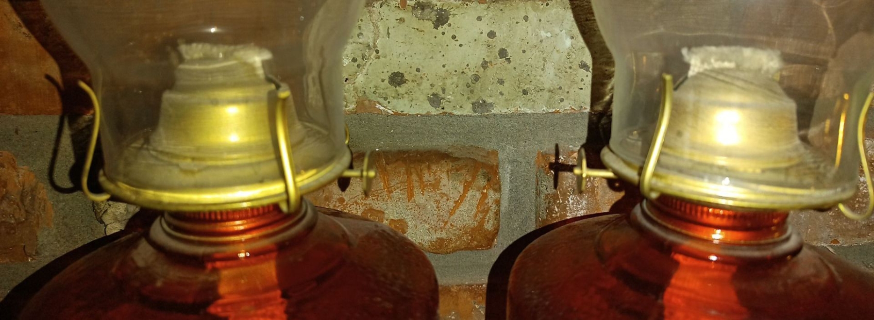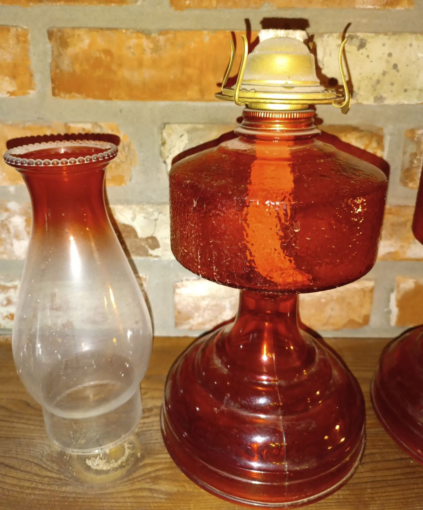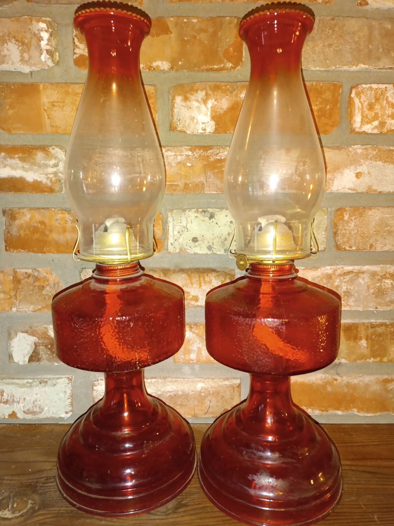 Vintage Ruby Red Flash Hurricane Oil Lamps (X2) Kerosene Lantern 19"tall