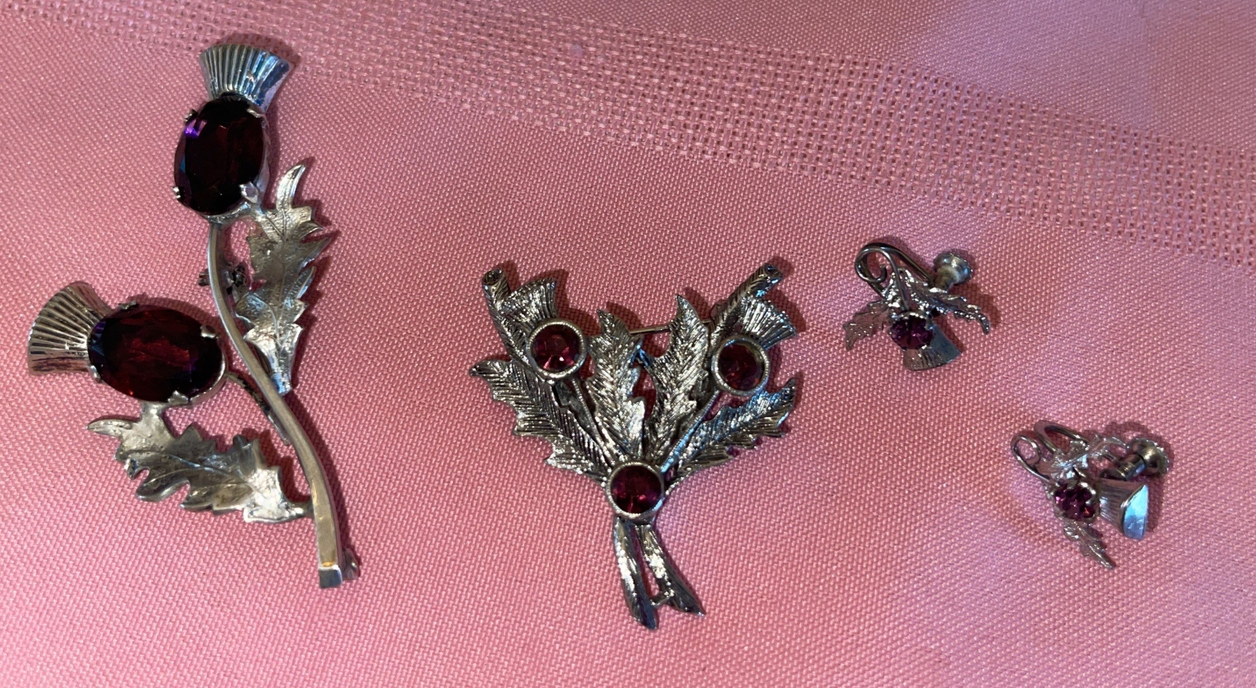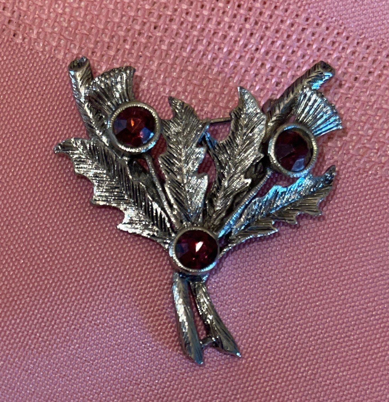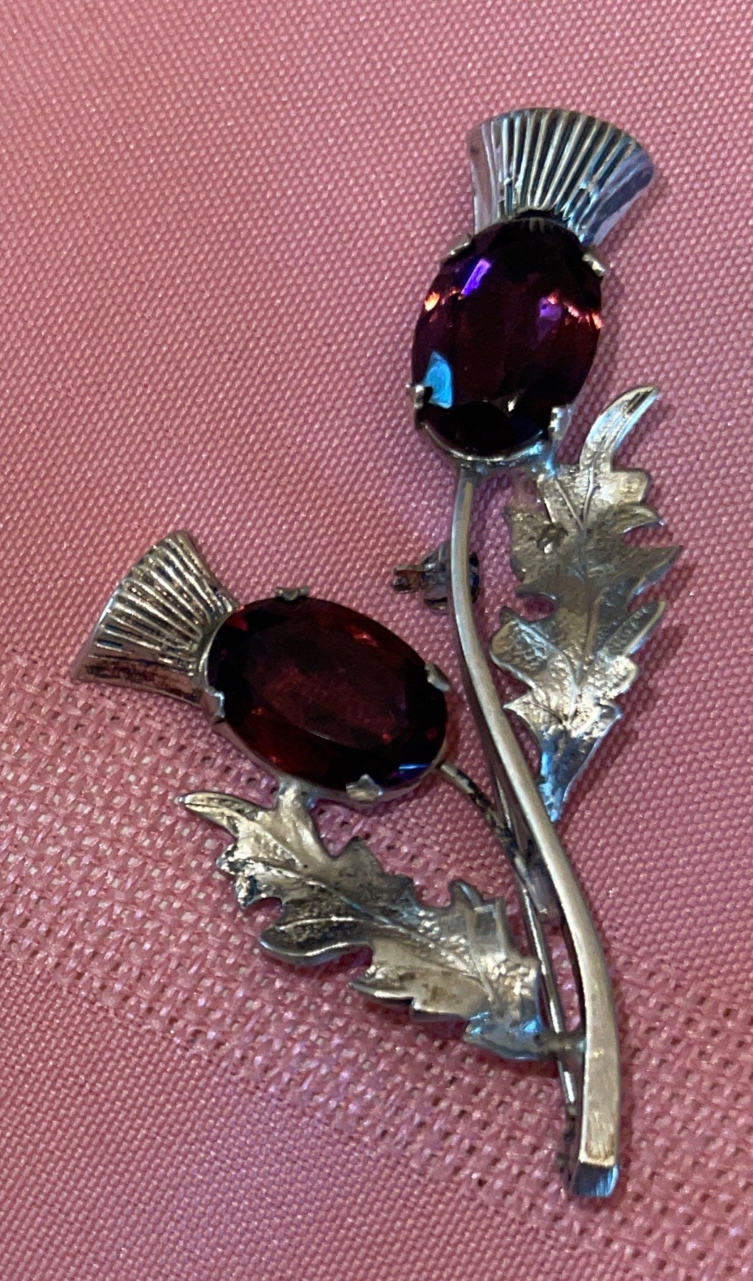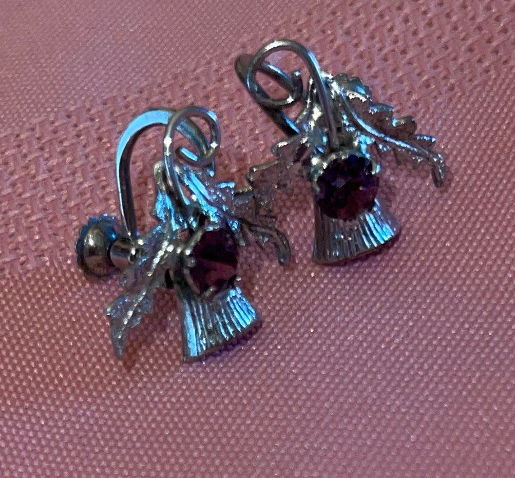 Vintage Scottish Thistle Brooch w/ Purple Crystal Stone Accessories
