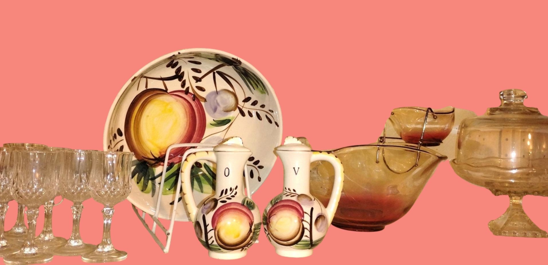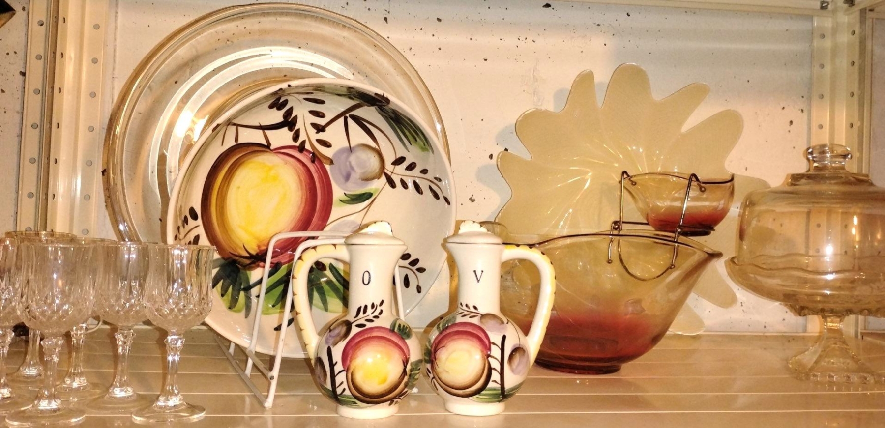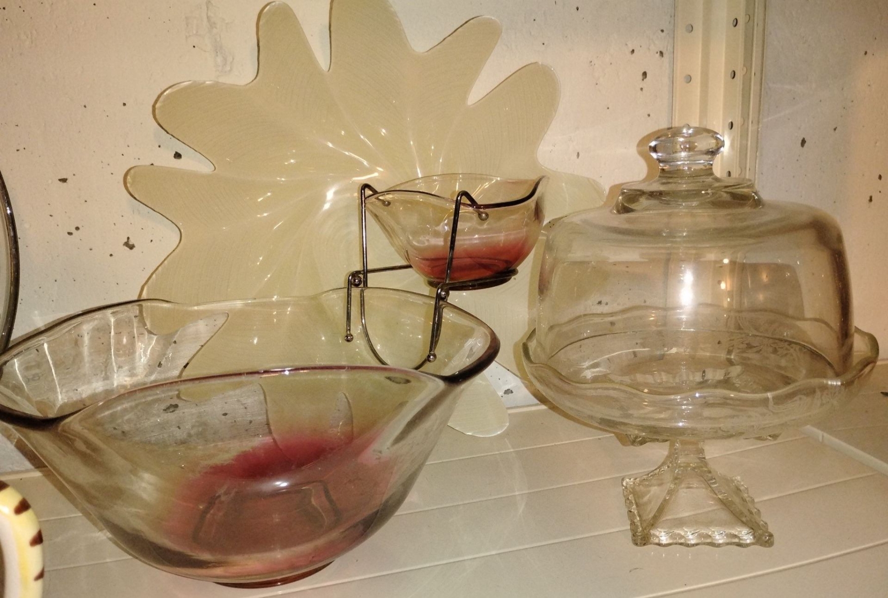 Vintage Serving Vessels Cranberry Ambre Floral Canister Decanters & More