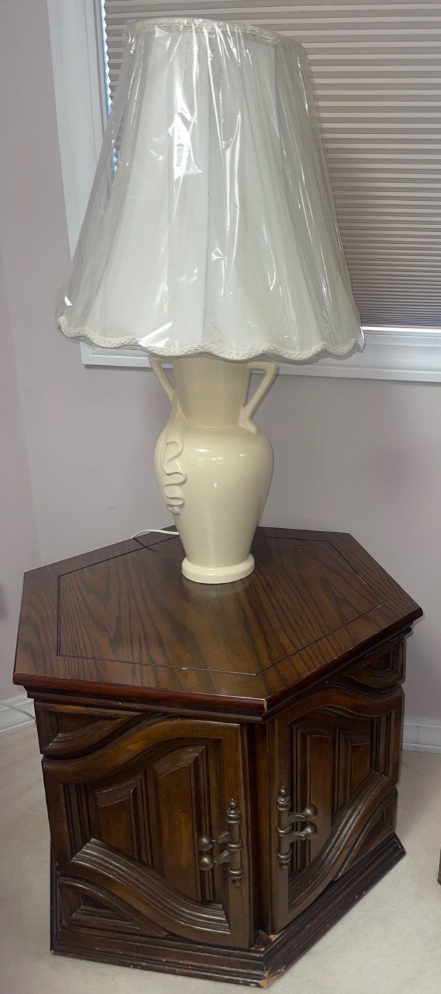 Vintage Side Table w/Cubby ++Beautiful Off White Tall Lamp High End