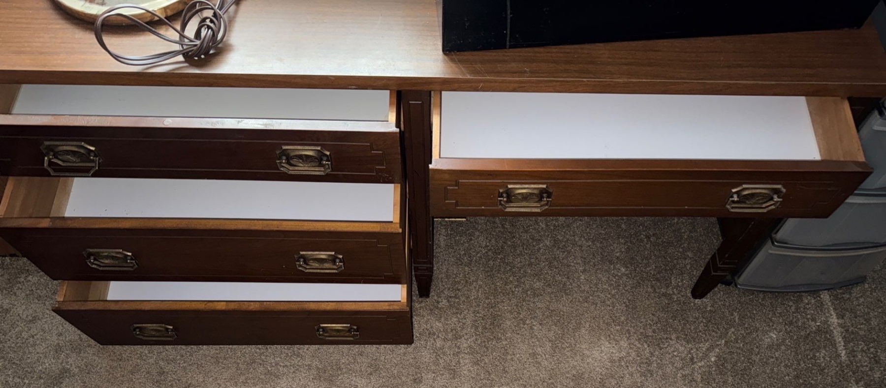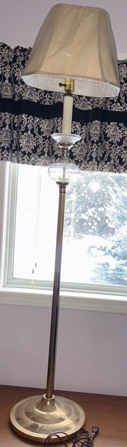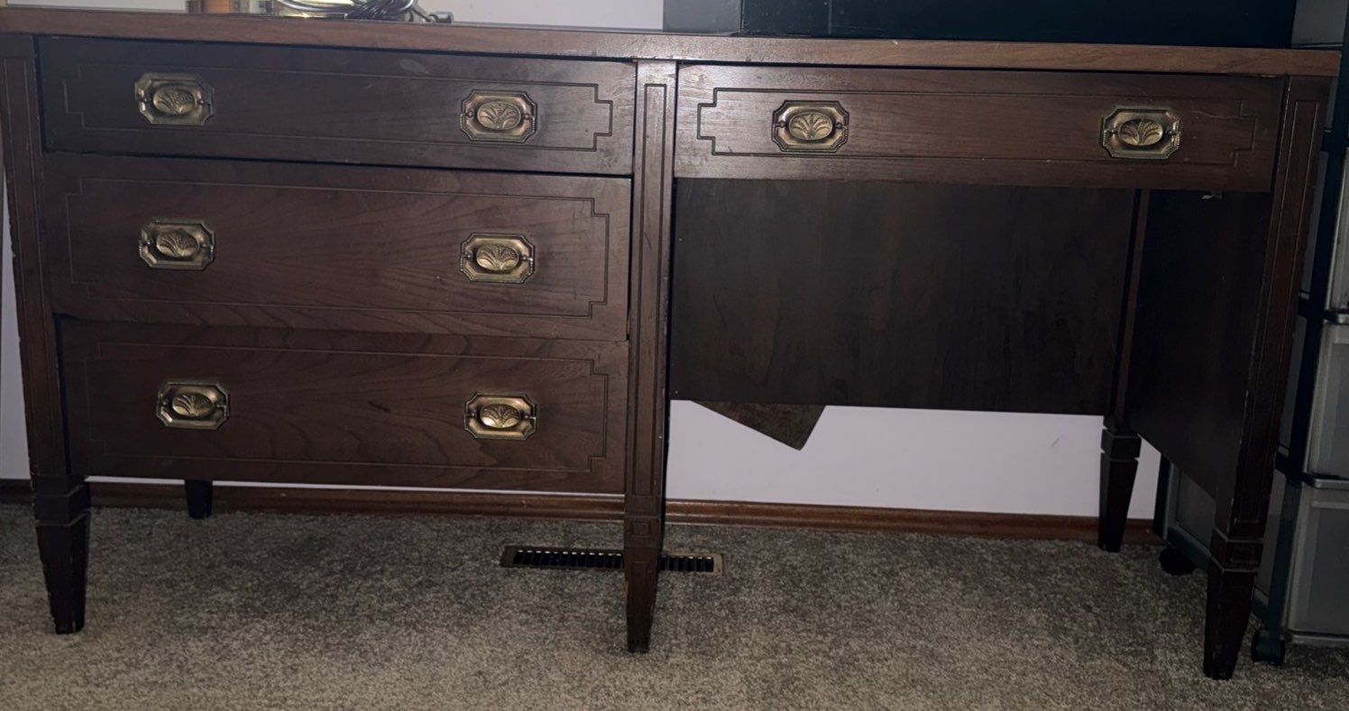 Vintage Solid Wood Desk w/ Tall Brass Lamp 72"tall