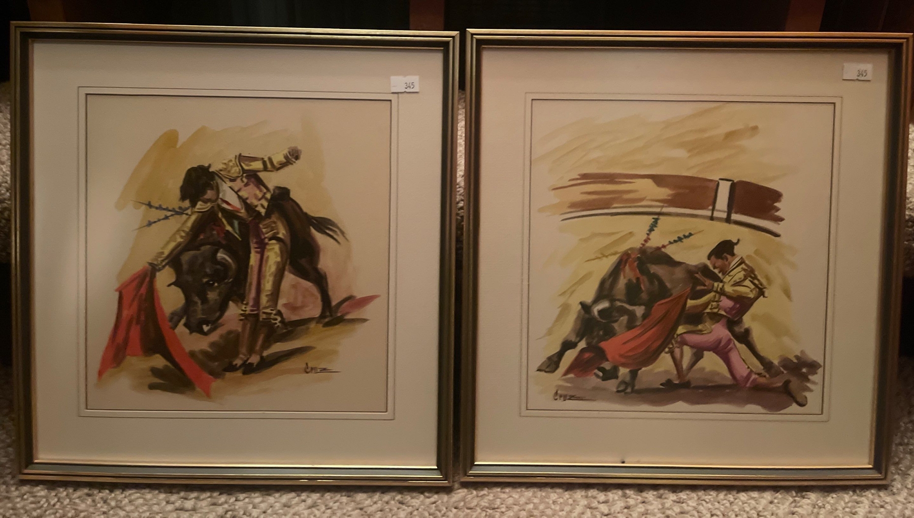 Vintage Spanish Bullfighters Water Color Paintings By "Cruz"