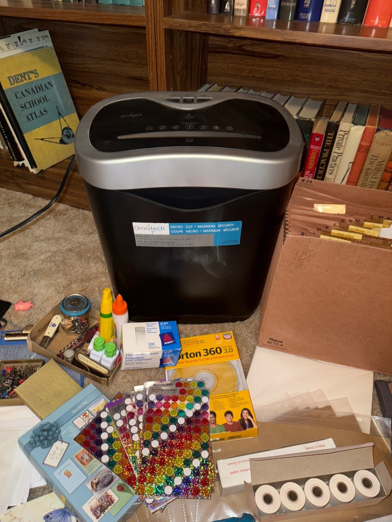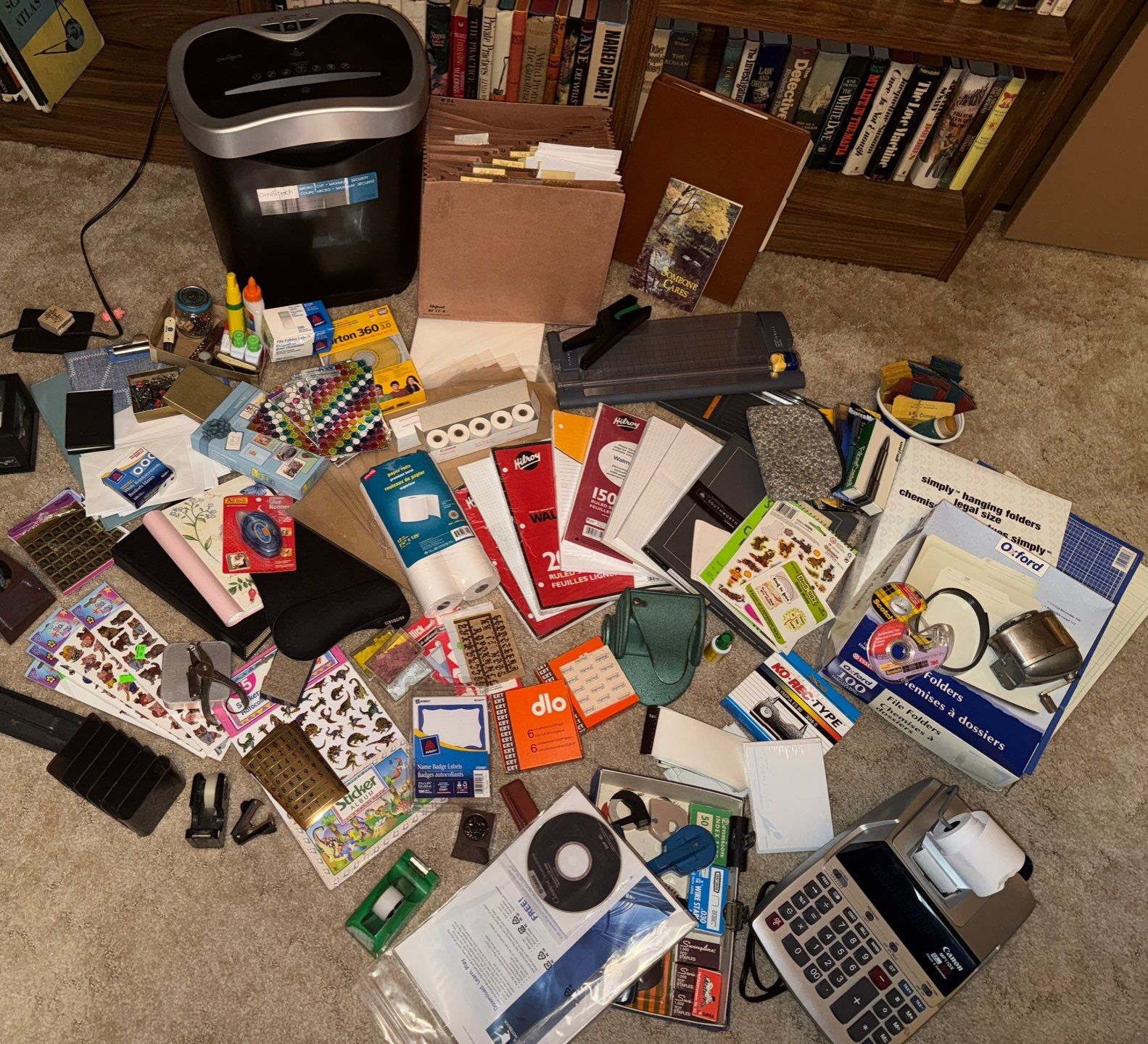 Vintage Stationary Hoard - Desktop Office Supplies Omnitech Paper Shredder Label Makers & more
