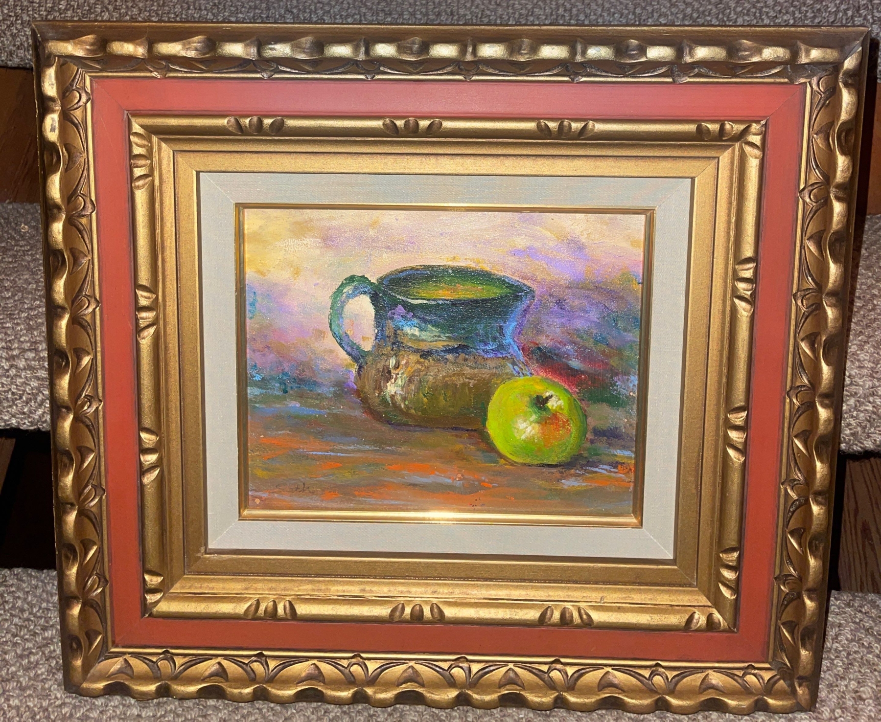Vintage Still Life Painting Oil On Canvas in A Gilded Frame 22" x 17"