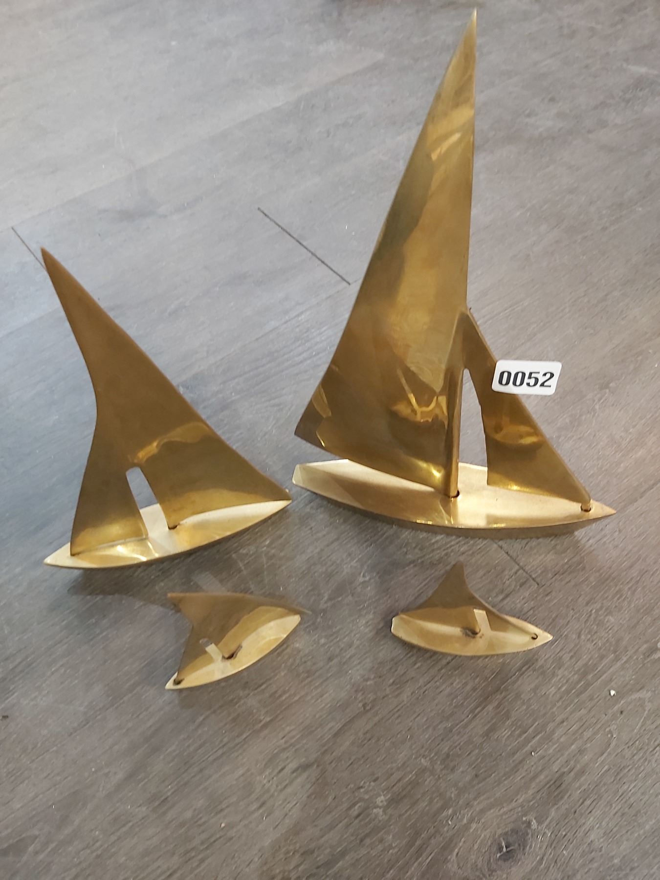 Vintage Taiwanese Brass Sailboats x4 Largest 15"h - Medium 11 1/2"h - Smallest both are 6"h