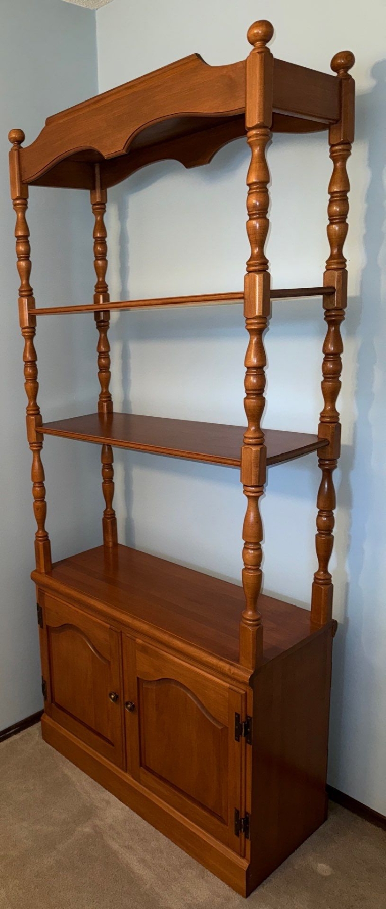 Vintage Thomasville Solid Oak Shelving Unit W/Cabinet Base
