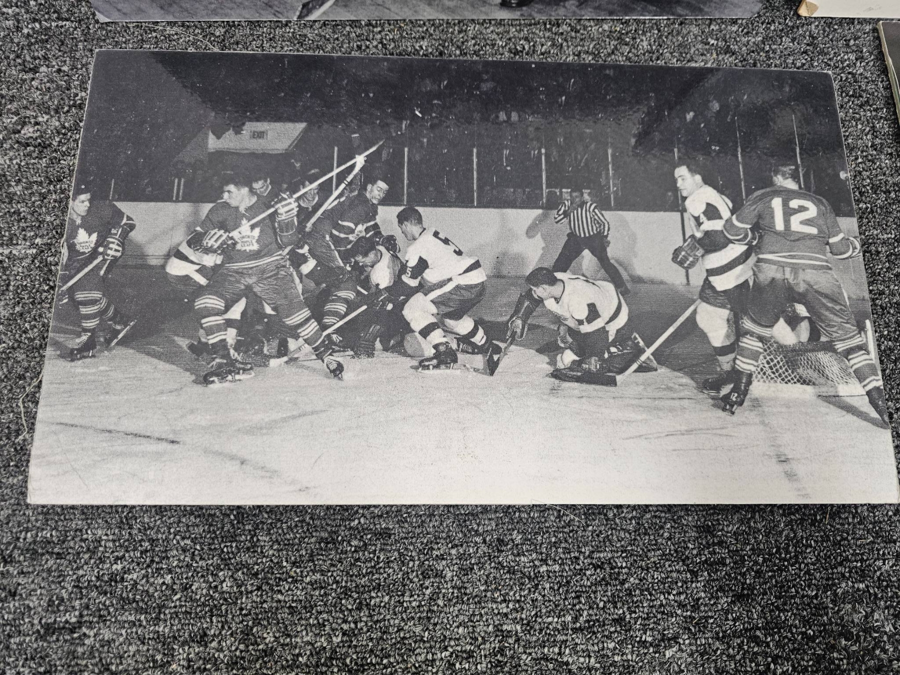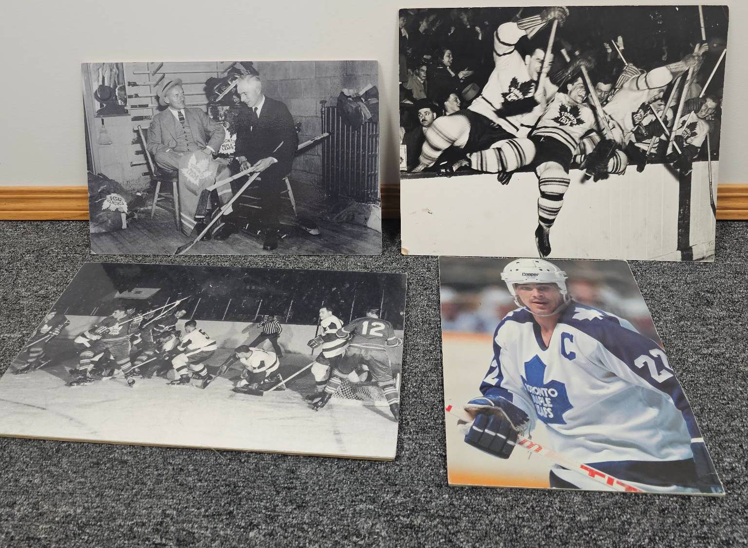 Four photographic prints featuring iconic moments from Toronto Maple Leafs hockey history. Includes black-and-white and color images, showcasing players, action shots, and historical moments. Ideal for hockey enthusiasts or Maple Leafs fans. Each print captures the legacy and spirit of the team, making them a perfect addition to your sports memorabilia collection.
