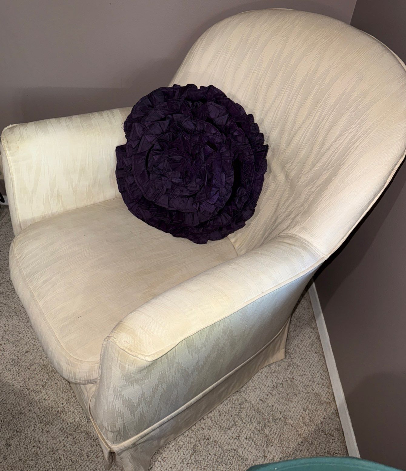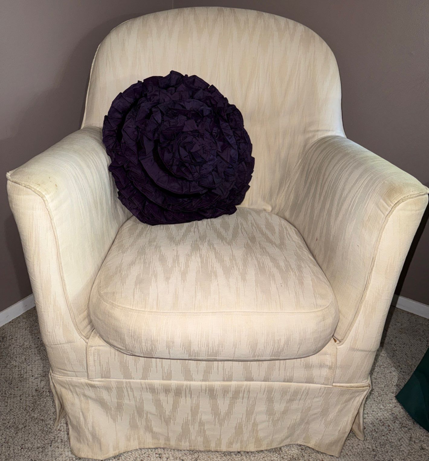 Vintage Upholstered Arm Chair w/ Decorative Throw Pillow 37T