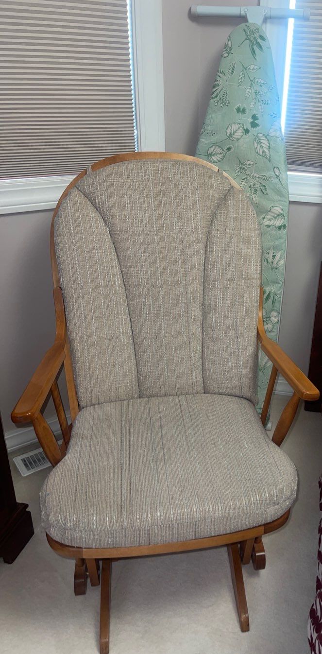 Vintage Upholstered & Wooden Rocking Chair w/Ironing Board 26"x28"x54"tall