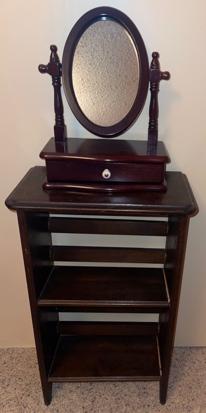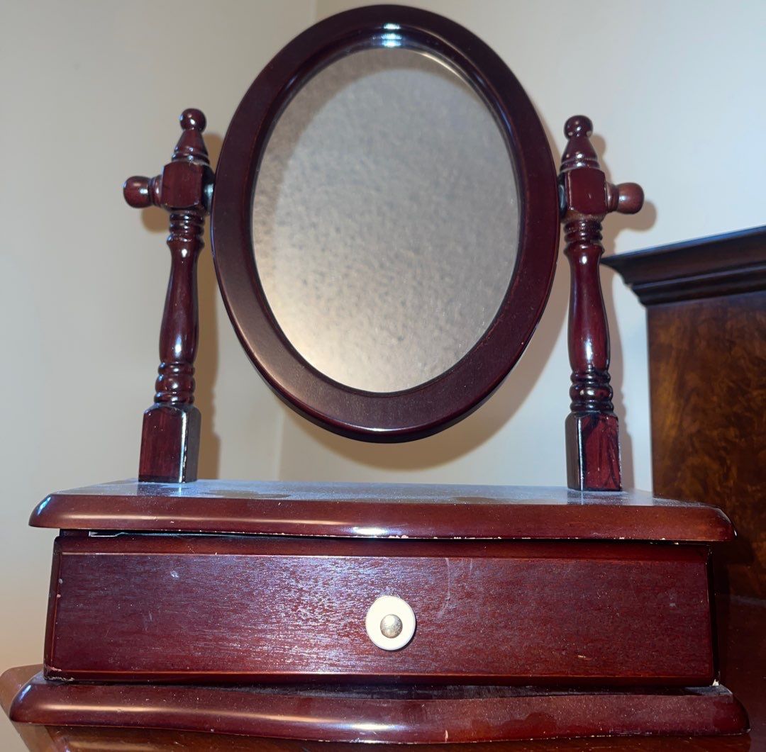 Vintage Victorian-Style Wooden Jewelry Box w/A Swivel Mirror-Dressing Table