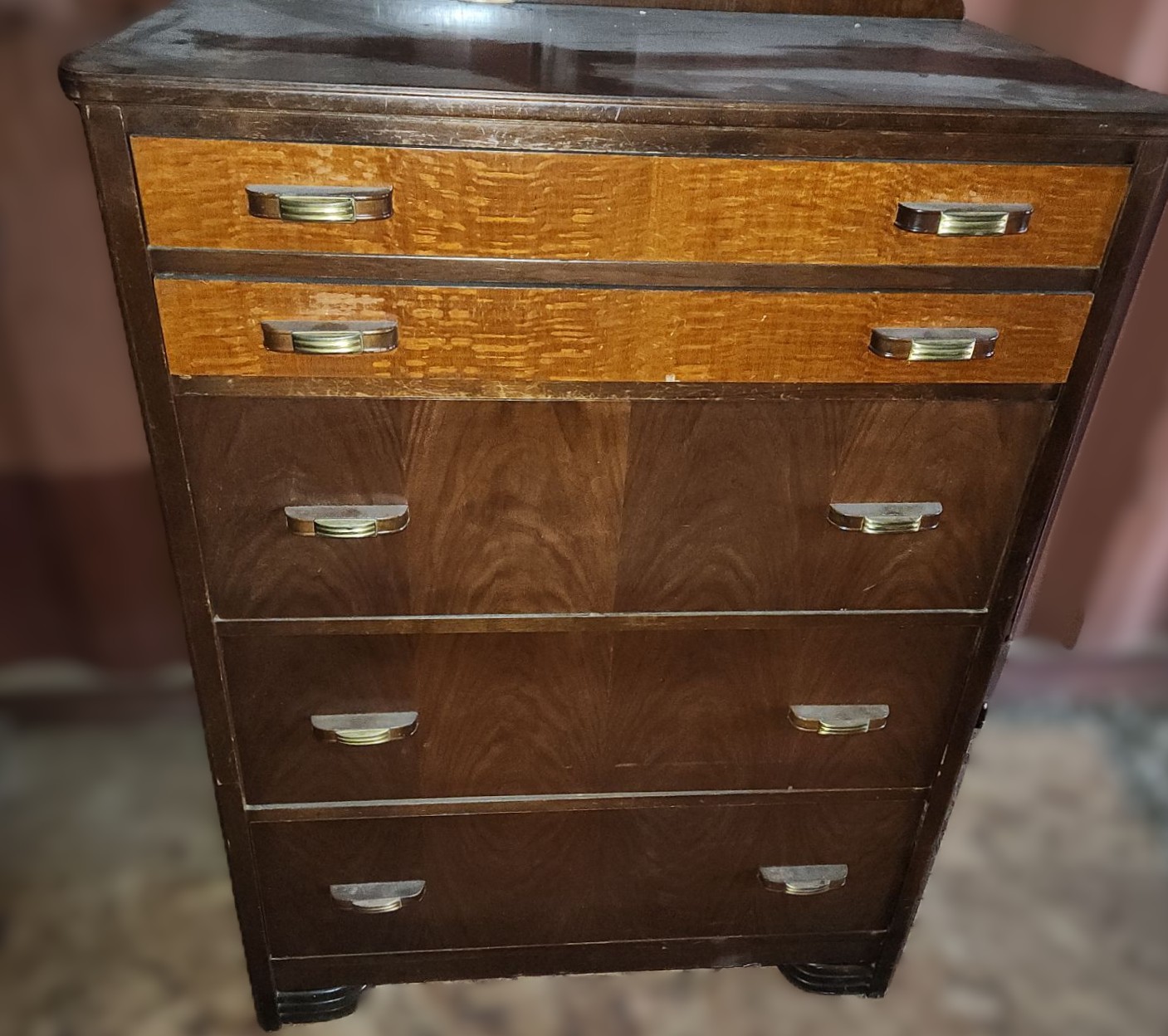 Vintage Wooden 5 Drawer Tall Dresser 33 W, 19 D, 45.5 T
