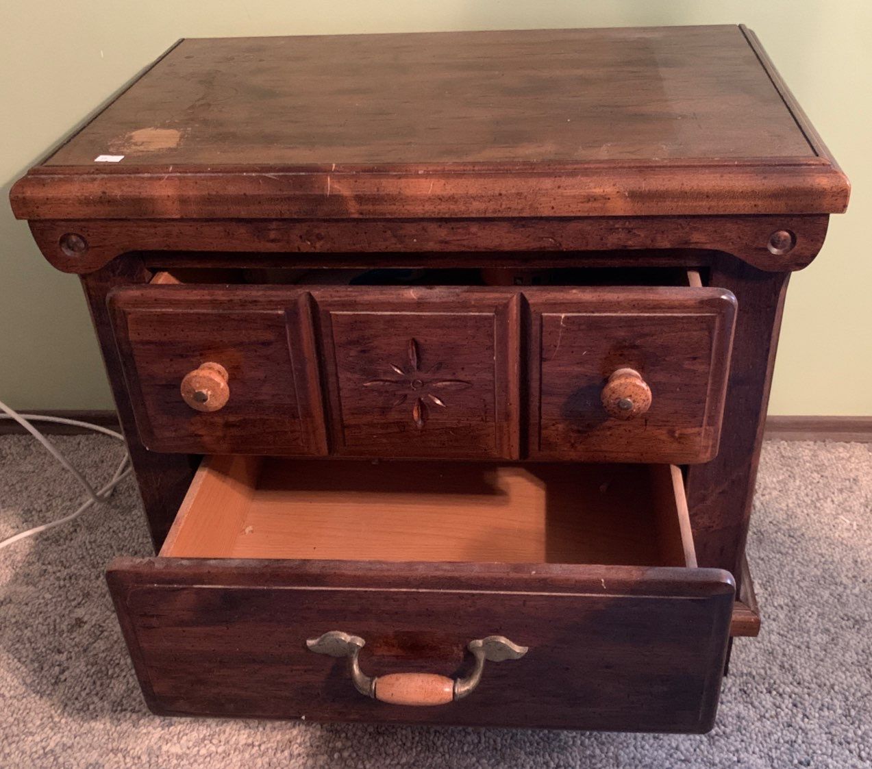 Vintage Wooden Bedside Table (Slight Water Damage on Top) - 26W, 19D, 23T