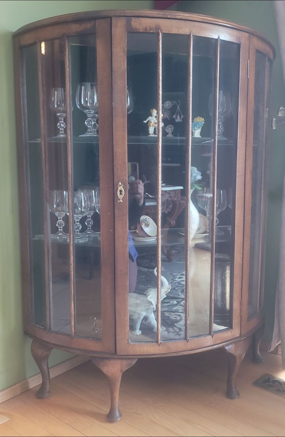 Vintage Wooden & Glass Liquor Cabinet (Contents NOT Included; No Key) -- 36W, 13D, 46T