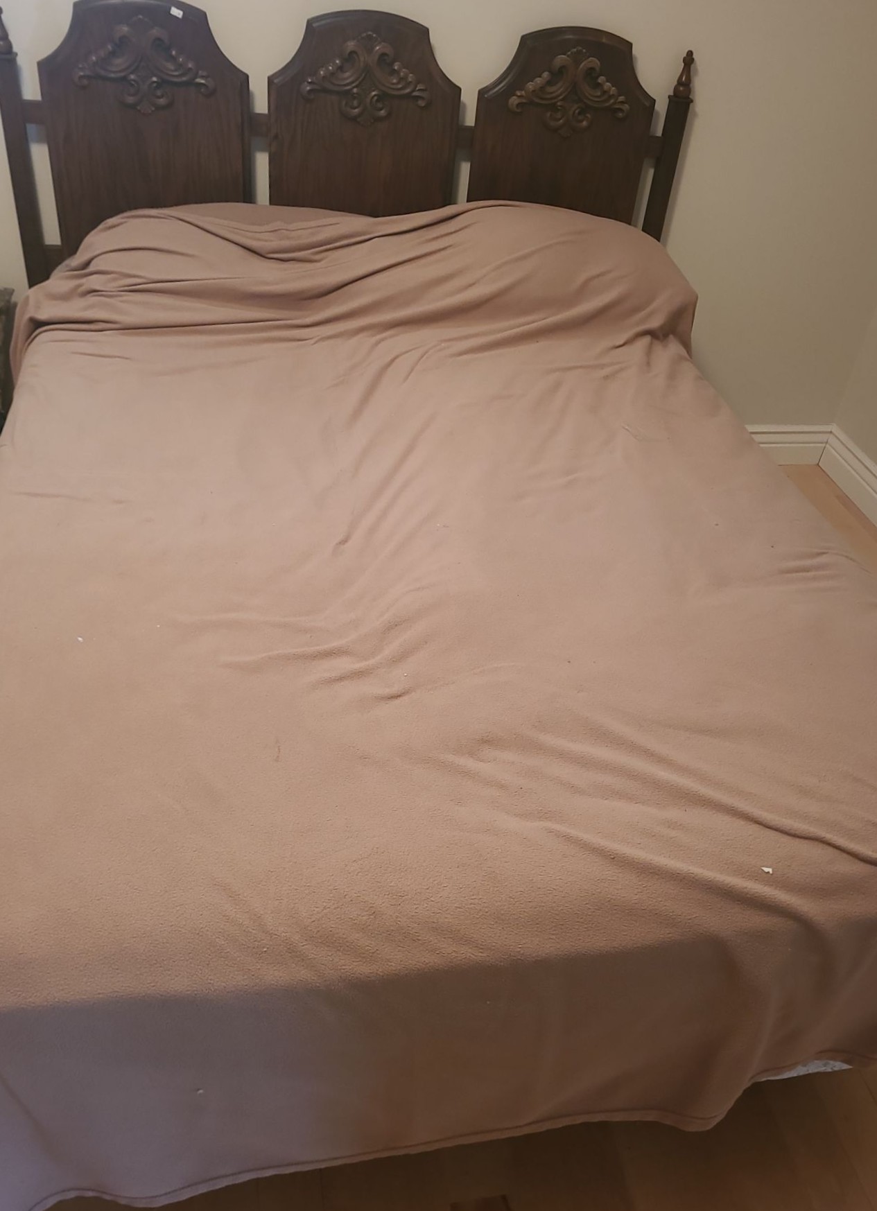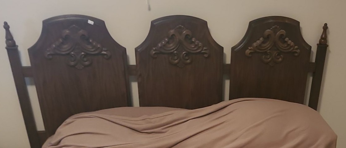 Vintage Wooden Headboard, Frame, Mattress and Boxspring 60 W, 76 D, 45 T