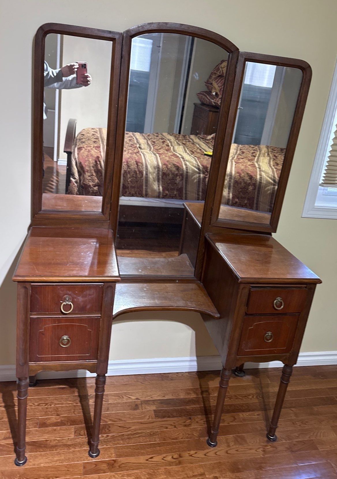 Vintage Wooden Vanity, No Chair - 44W, 18D, 64T