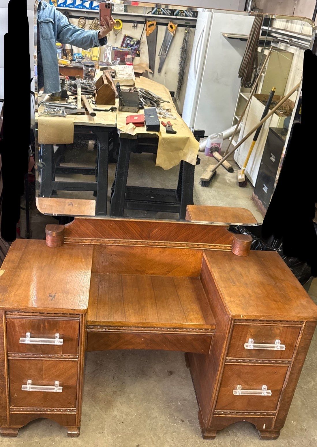 Vintage Wooden Vanity (Some Damage on Back)  - 47W, 18D, 65T