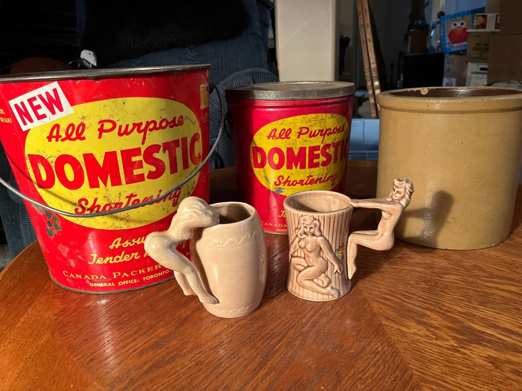 Vintage tins & a clay pot