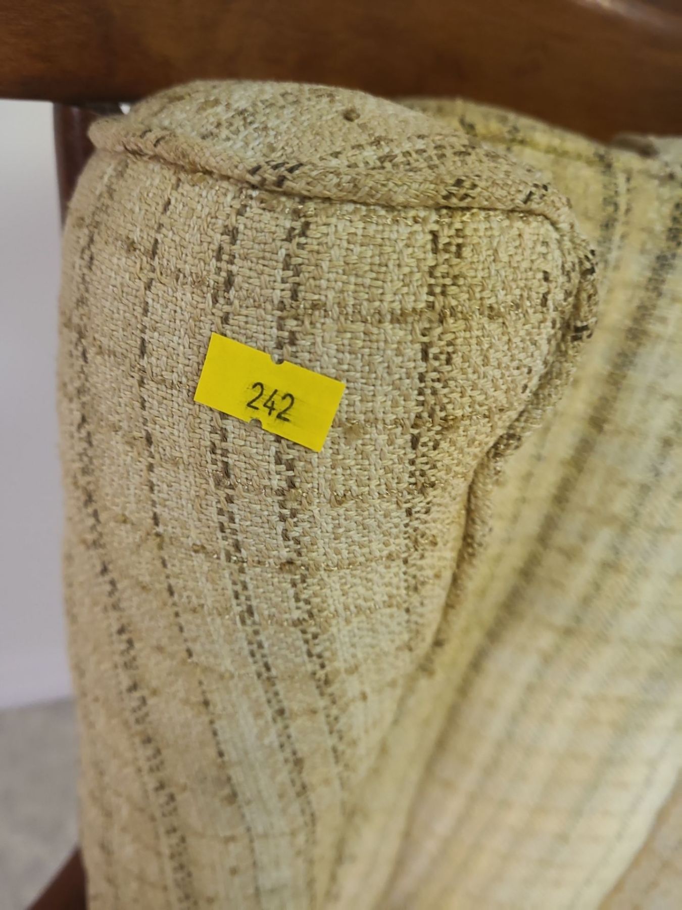 Vintage wooden chair with beige cushion (small stain) - 20W, 24D, 33T