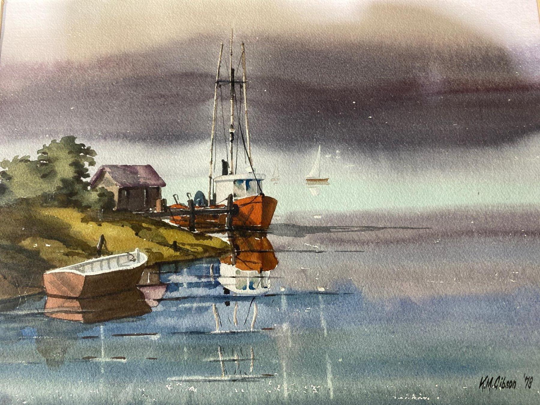Water Side Scene by K. M. Gibson (15.25" x 11.25" Inches Before Frame)