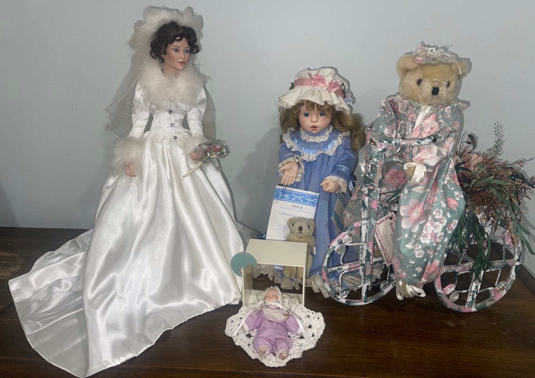 Wedding Doll, Sleeping Newborn, A Kiss Goodnight, & A Bear on a Bicycle Ashton Drake Galleries