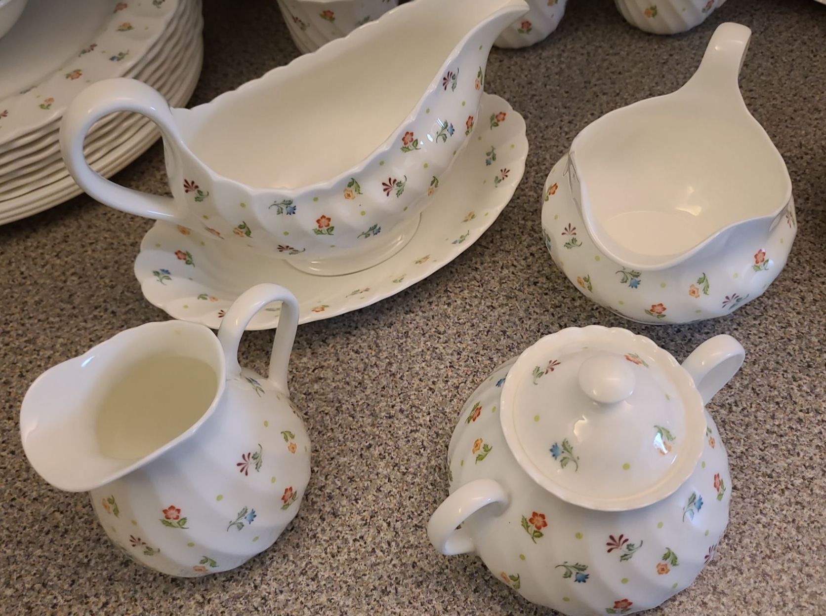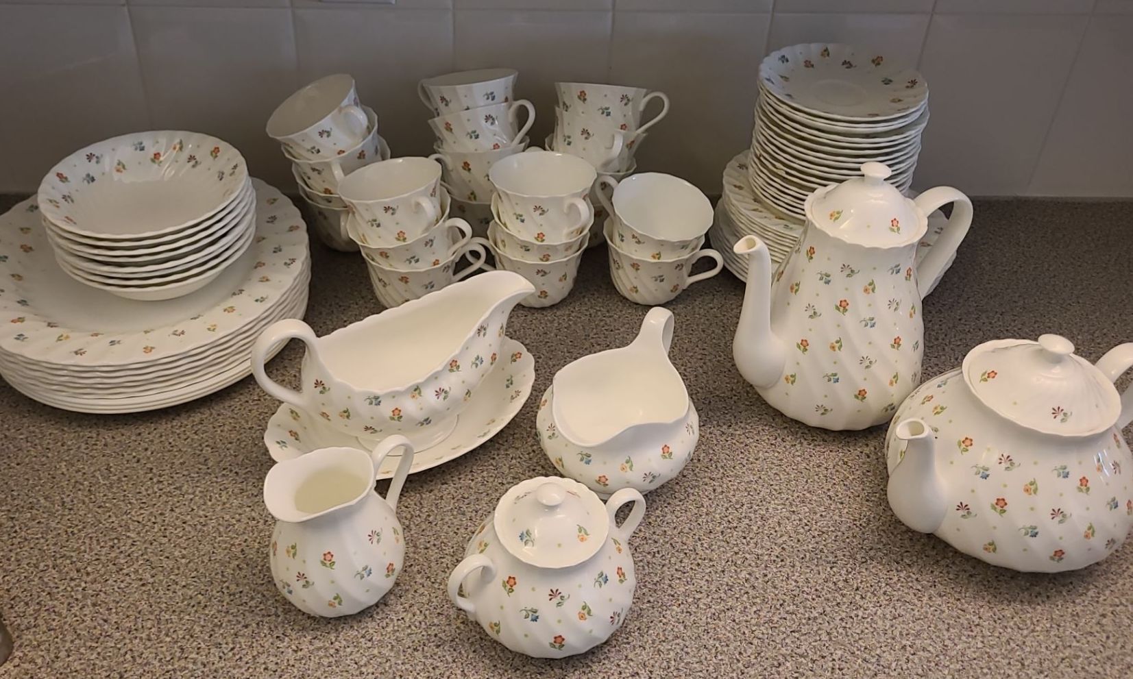 Wedgewood England China Set 'Cascade' - Plates, Tea Cups, Teapots, Gravy Boat