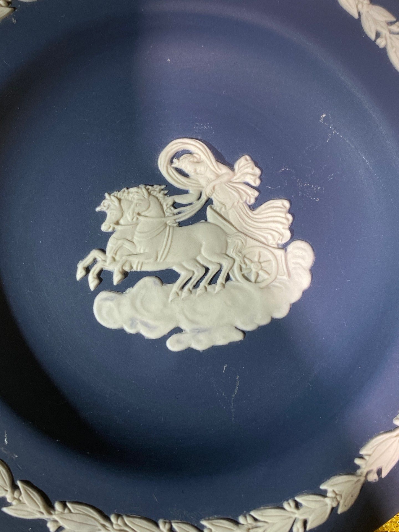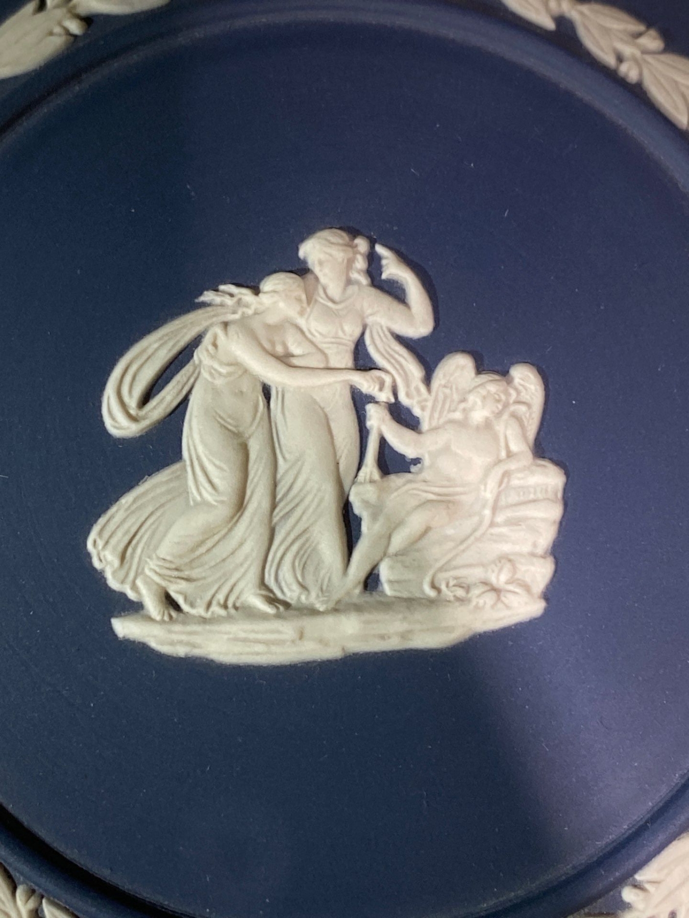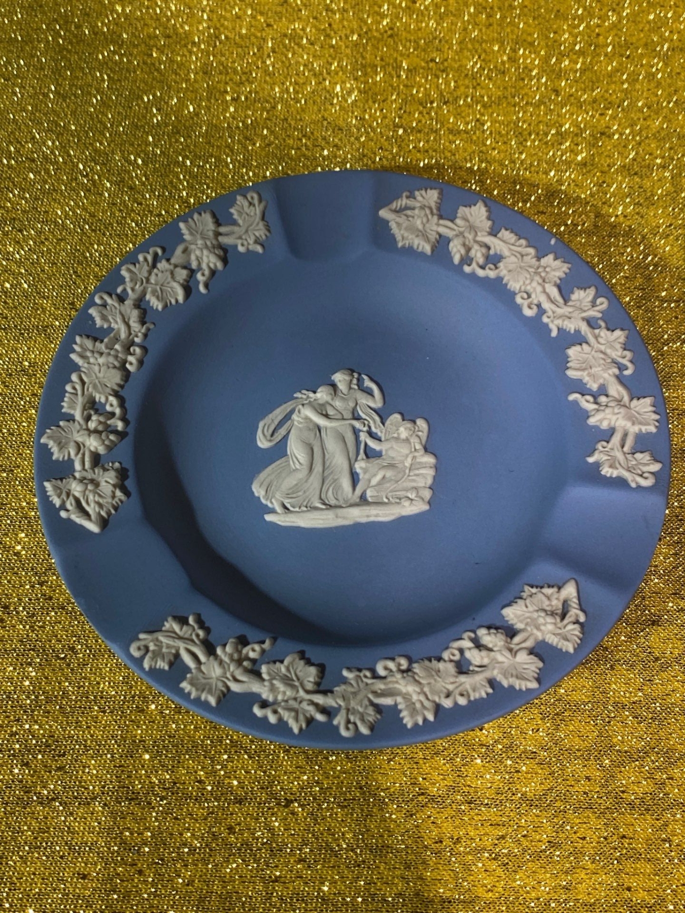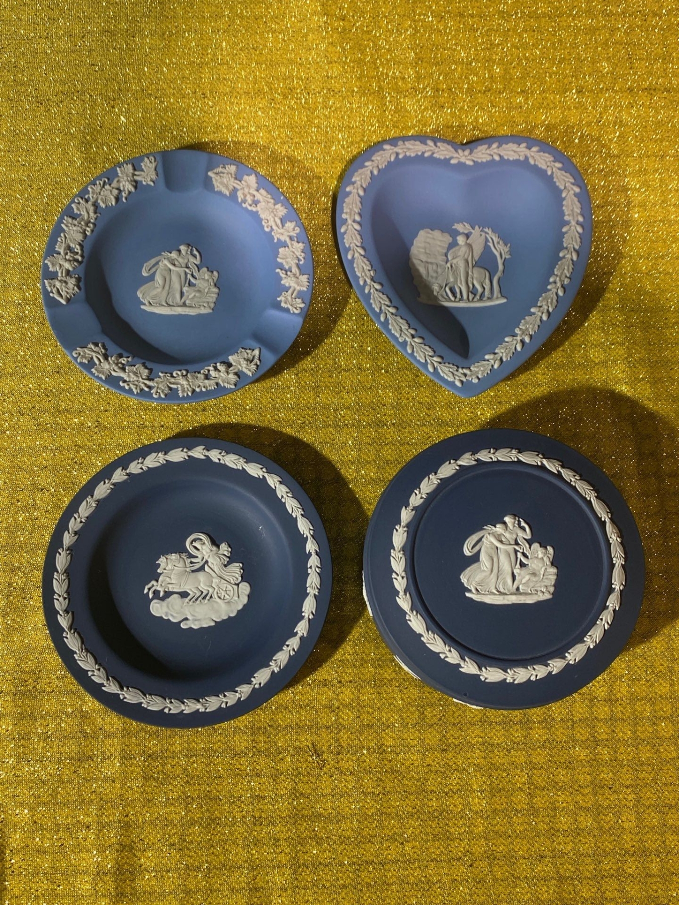 This assortment features Wedgwood Jasperware including a trinket dish, ashtray, and pin dish, each showcasing the brand’s iconic matte finish and classical relief designs. Rendered in soft pastel tones with crisp white detailing, these pieces exemplify Wedgwood’s timeless elegance and neoclassical artistry. Perfect for collectors of fine ceramics or lovers of decorative tabletop accents.