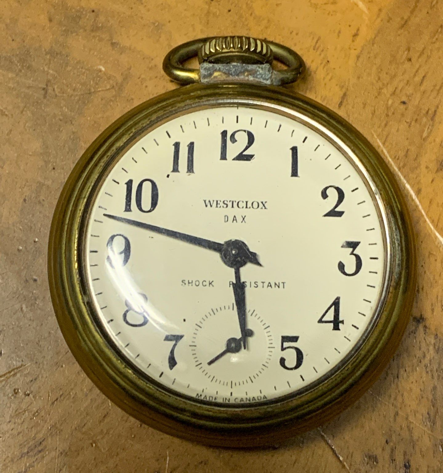 Westclox DAX Shock Resistant Vintage Gold Colored Pocket Watch