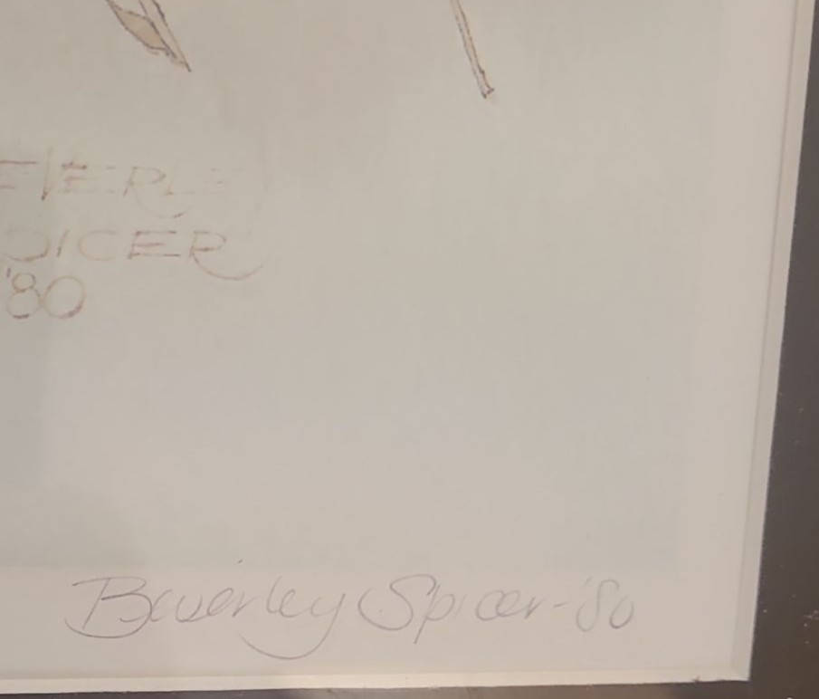 Wheel Print 21 x 25.5 Artist Beverley Spicer '80, Numbered 42/300, Framed Under Glass