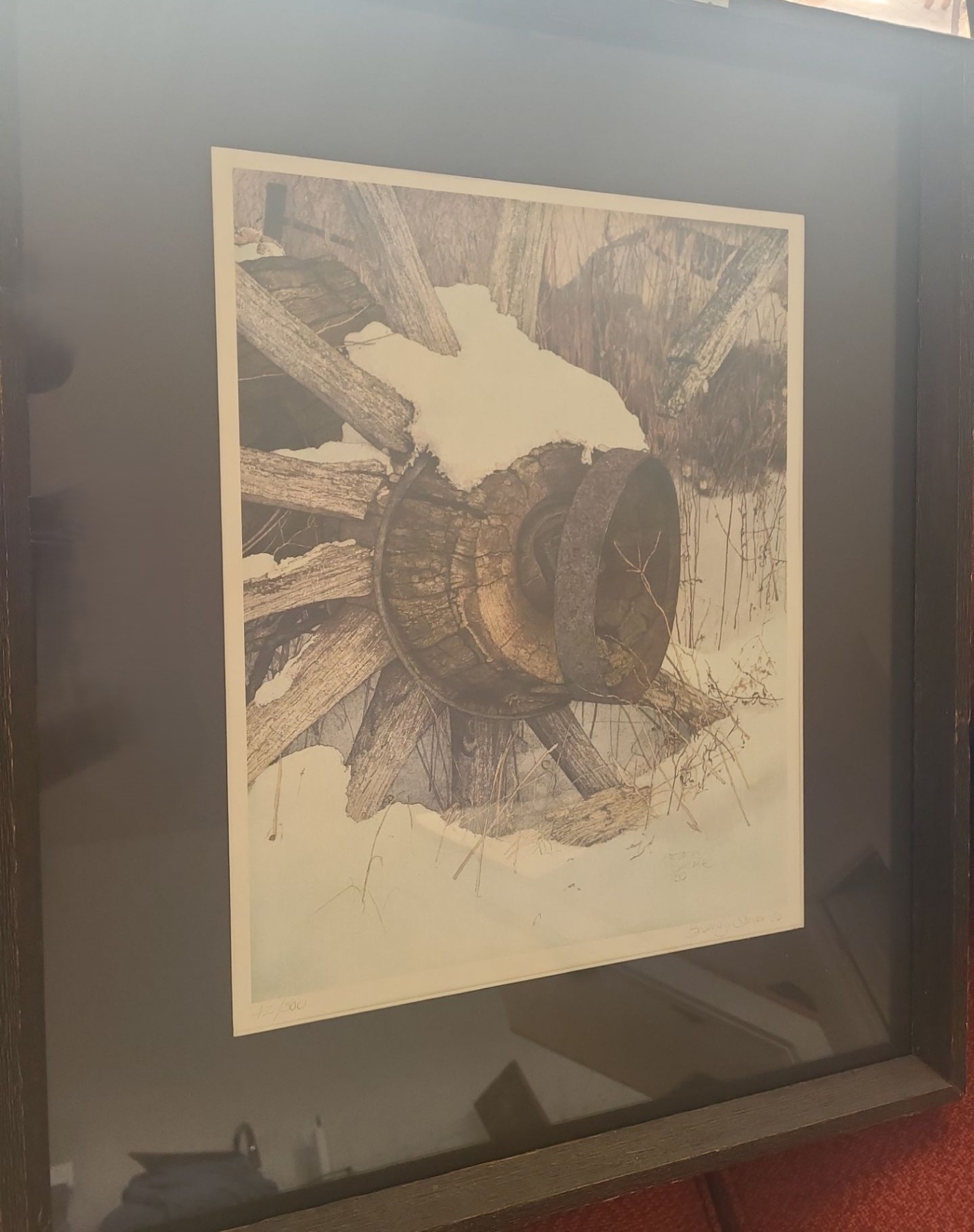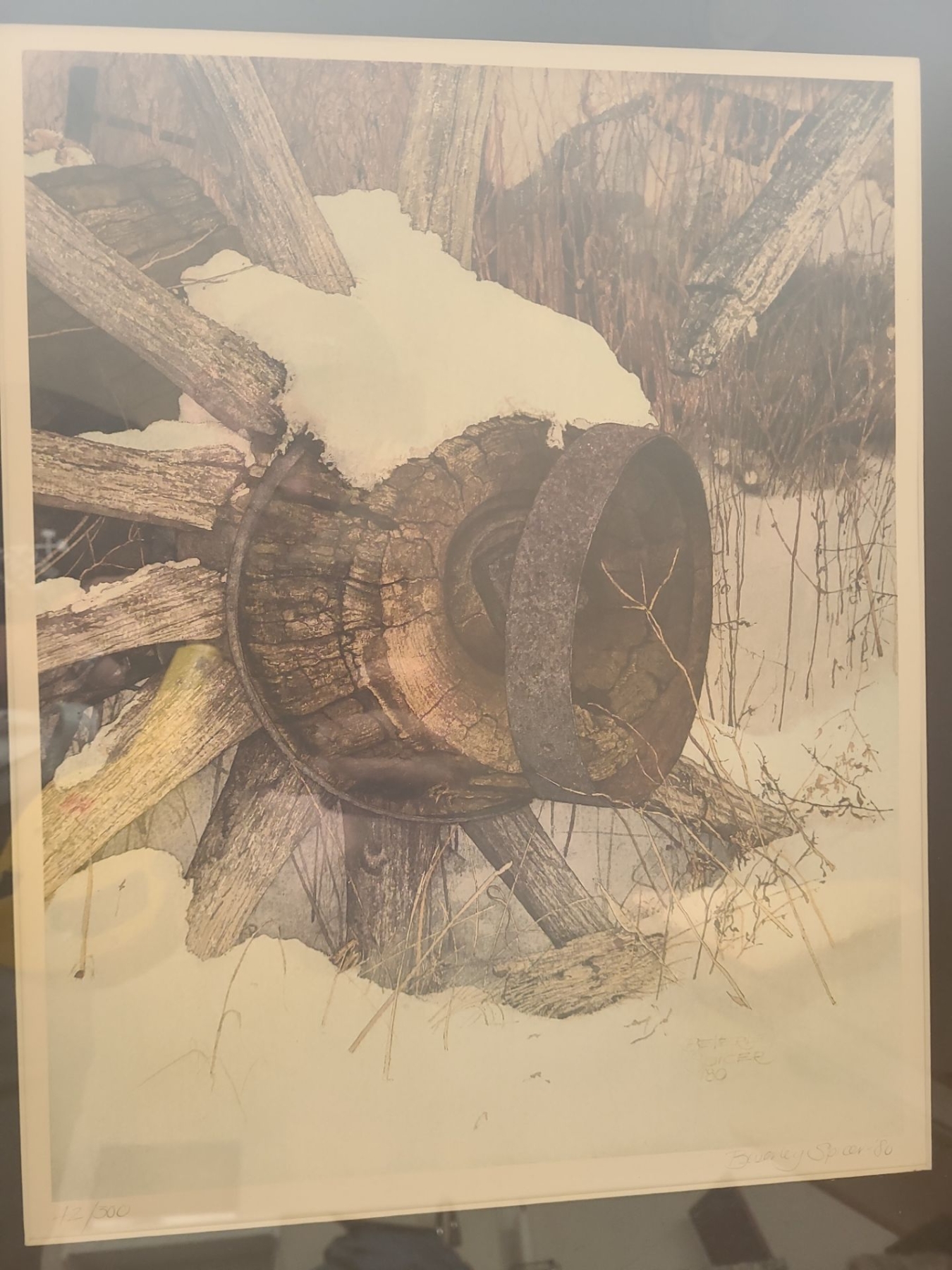 Wheel Print  21 x 25.5 Artist Beverley Spicer '80, Numbered 42/300, Framed Under Glass